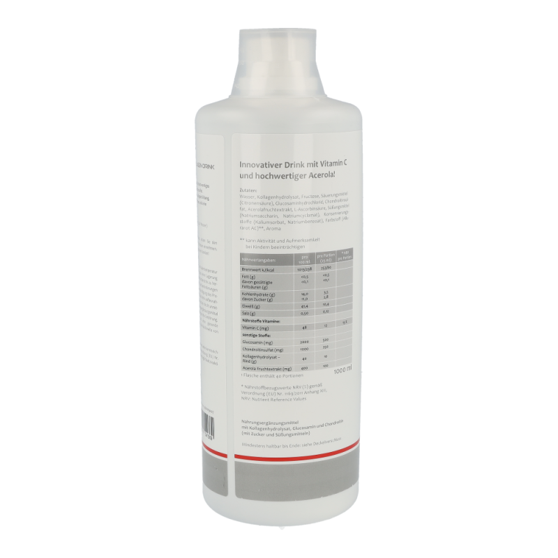 Glucosaminhydrochlorid, Chondroitinsulfat, Acerola Fruchtextrakt, Vitamin C, Süßungsmittel (Natriumsaccharin, Natriumcyclamat), Konservierungsstoffe (Kaliumsorbat, Natriumbenzoat), Farbstoff (Allurarot AC)**, Aroma