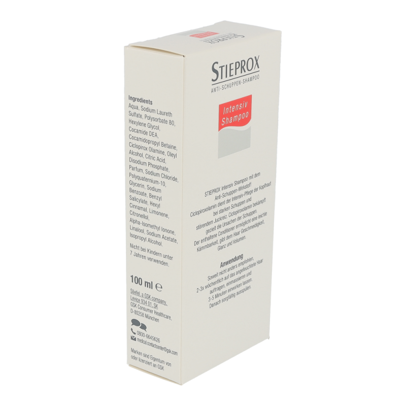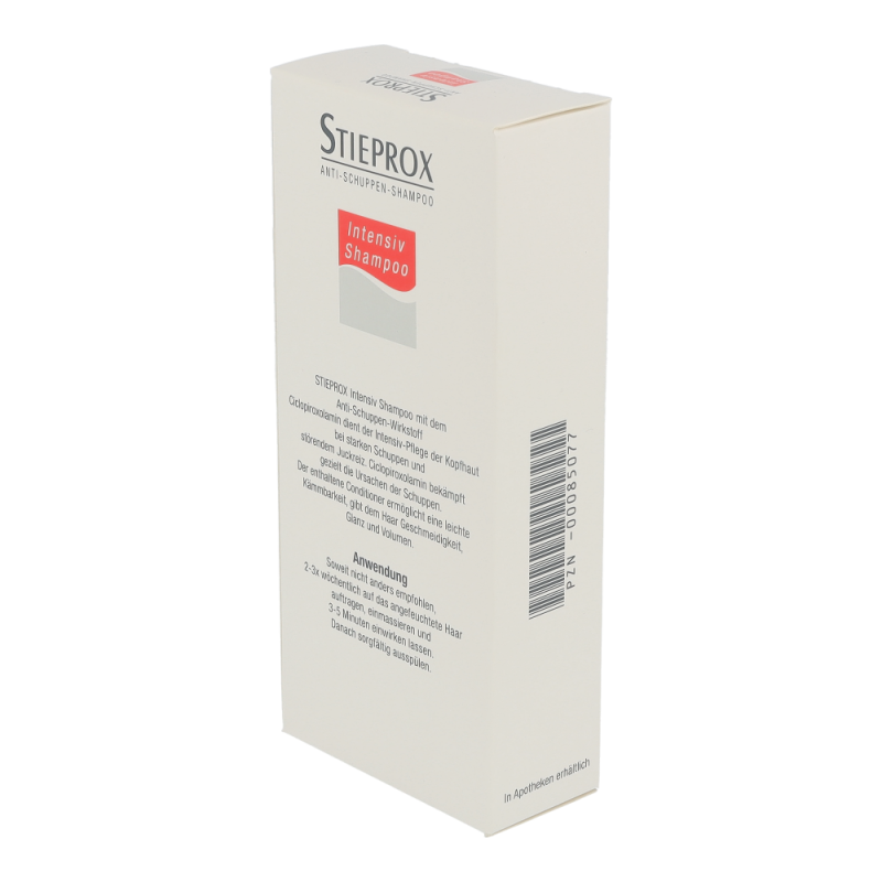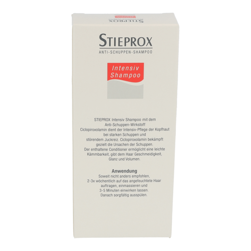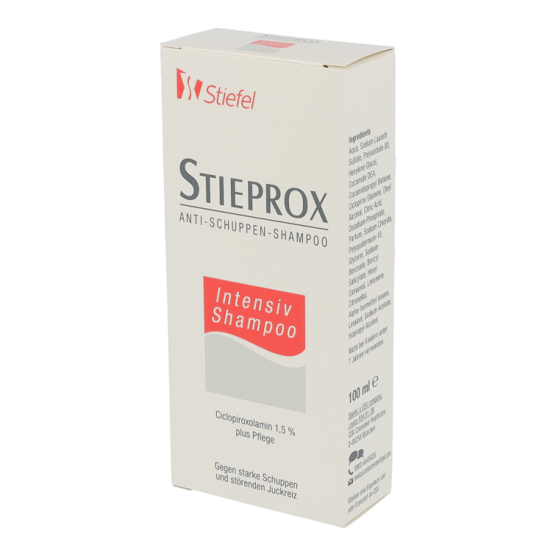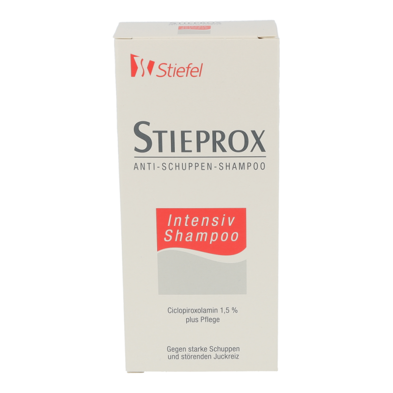 Stieprox Intensiv Shampoo enthält den Wirkstoff Ciclopirox-Olamin. Dieser gehört zur Gruppe der Antimykotika. Stieprox-Shampoo wird zur Behandlung von geröteter, juckender und sich schuppender Kopfhaut verwendet.