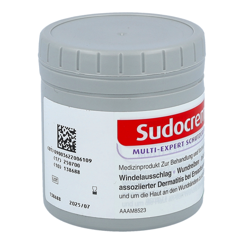 Sudocrem Multi-Experte Schutzcreme zur Behandlung von Windeldermatitis, Inkontinenz-assoziierte Dermatitis bei Erwachsenen und als Dekubitusprophylaxe.
