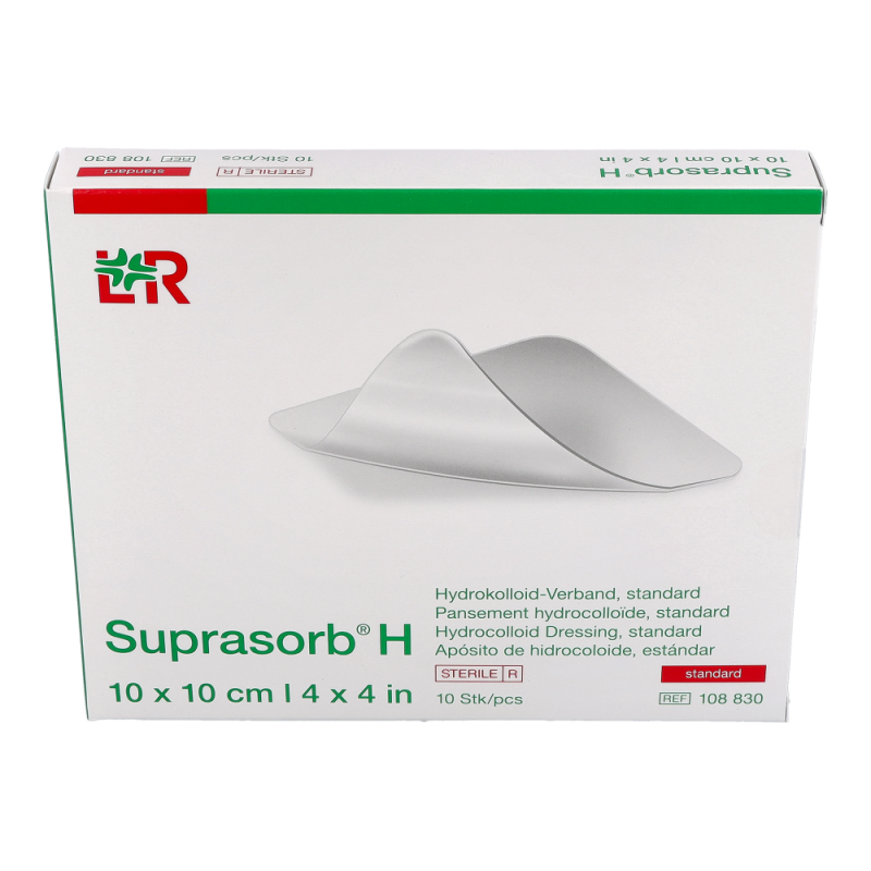 SUPRASORB H Hydrokolloidverband – Wundverband aus Polyurethanfolie und saugfähiger Hydrokolloidschicht für schwach bis mittel exsudierende Wunden, steril,Standard, 10x10cm