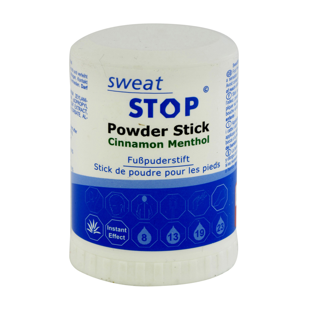 Sweatstop Fußpuder Stick ist ein weltweit einzigartiger Fußpuderstift für den Einsatz gegen Schweiß- und Geruchsbildung an den Füßen. Durch die wasserbindenden Eigenschaften des Talkpuders wird Feuchtigkeit und somit Schweiß auf der Haut absorbiert und so für ein angenehmes, trockenes Fußklima gesorgt.