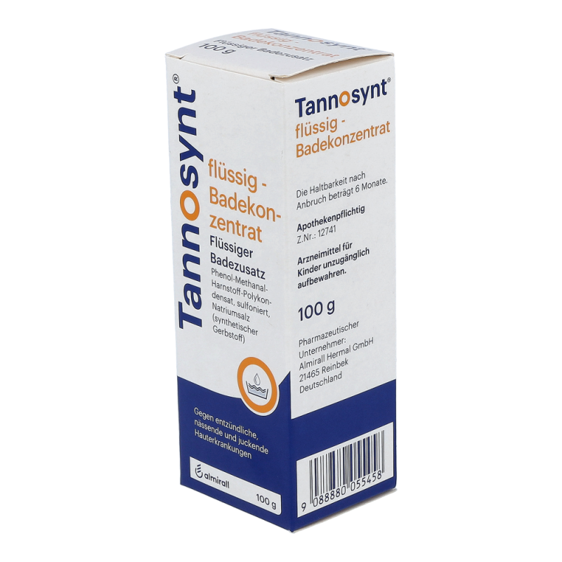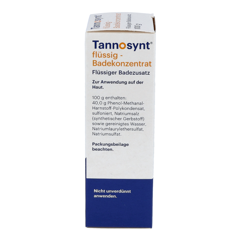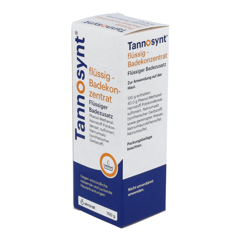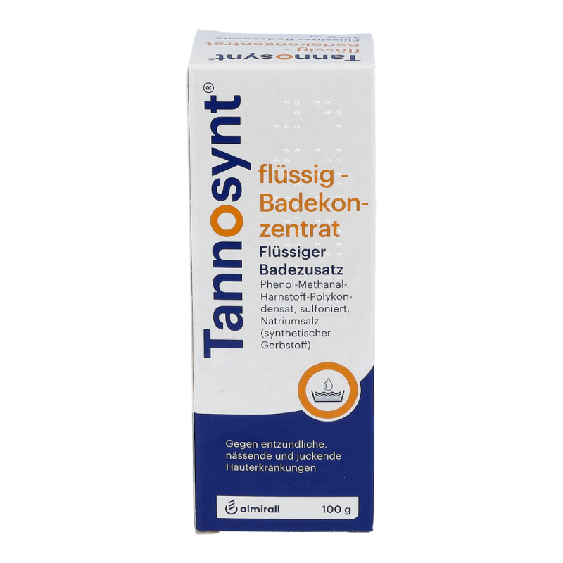TANNOSYNT® flüssig Badekonzentrat ist ein wässriges Konzentrat zur Anwendung in Form von Umschlägen, Waschungen und Bädern bei entzündlichen, nässenden und juckenden Hauterkrankungen im akuten Stadium.