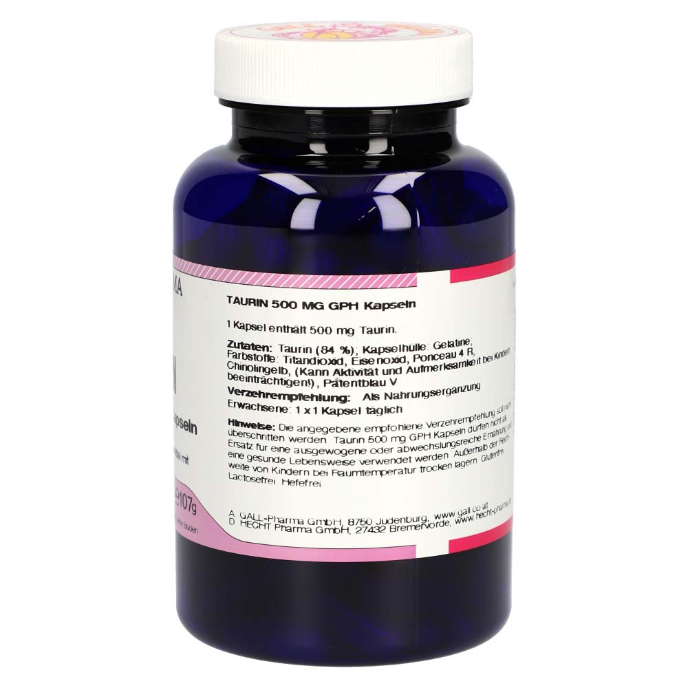 Taurin 500 mg GPH Kapseln enthalten Taurin, das die Fettverbrennung um den Faktor 4 verbessert, die Leber bei toxischer Überlastung (z.B. Alkohol) entgiftet und unangenehme Koffein-Nebenwirkungen blockt, d.h. den Puls beruhigt.