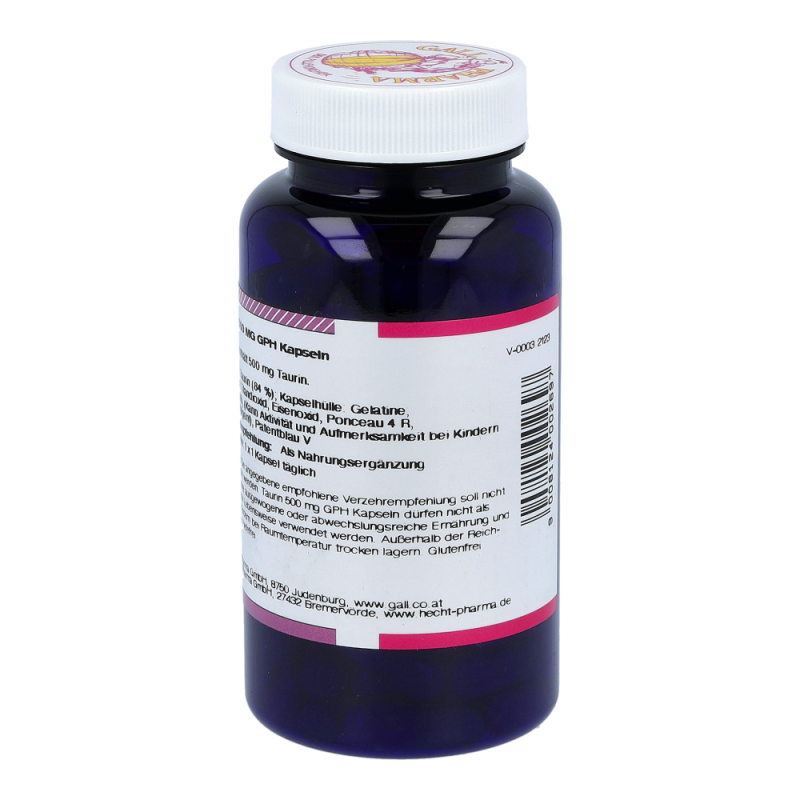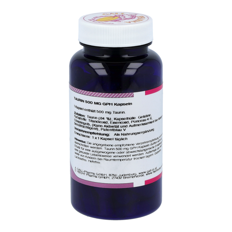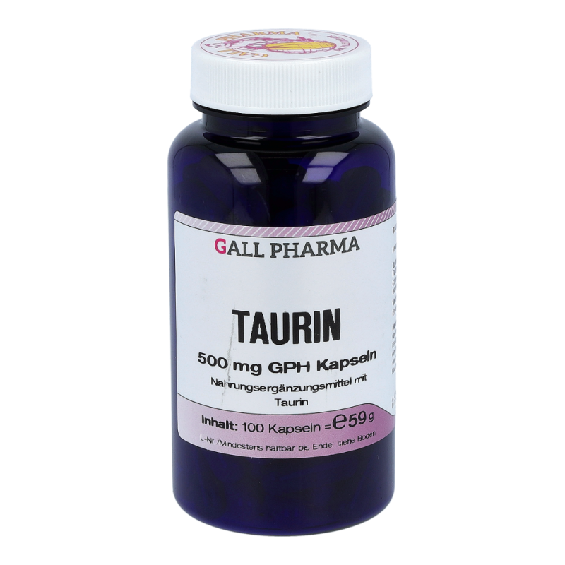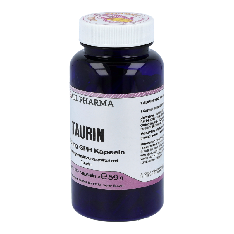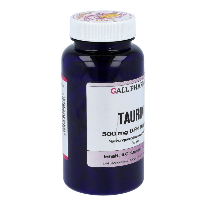 Gall Pharma Taurin 500 mg Kapseln enthalten 500 mg Taurin in einer Hartgelatinekapsel. Taurin verbessert die Fettverbrennung um den Faktor 4. Es entgiftet die Leber bei toxischer Überlastung und blockt unangenehme Koffein-Nebenwirkungen. Dies bedeutet, dass es den Puls beruhigt.