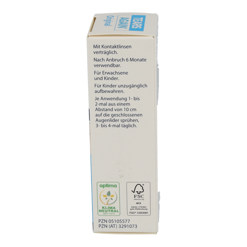 Tears Again Augen-Spray zur verbesserten Befeuchtung der Augen und Augenlider. Die erste Wahl bei umweltbedingten trockenen und tränenden Augen, Spannungsgefühl der Augenlider, Fremdkörpergefühl, Brennen und Jucken der Augen.