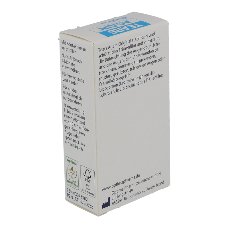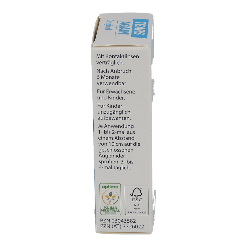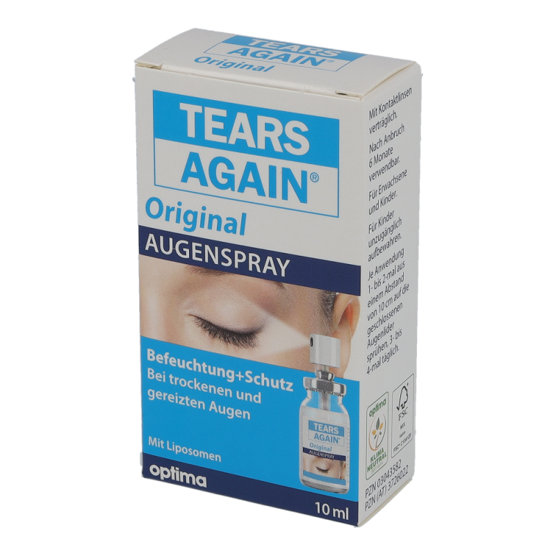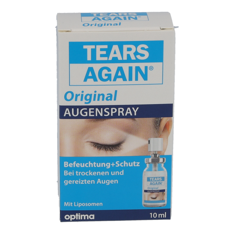 Tears Again Augen-Spray zur verbesserten Befeuchtung der Augen und Augenlider. Die erste Wahl bei umweltbedingten trockenen und tränenden Augen, Spannungsgefühl der Augenlider, Fremdkörpergefühl, Brennen und Jucken der Augen