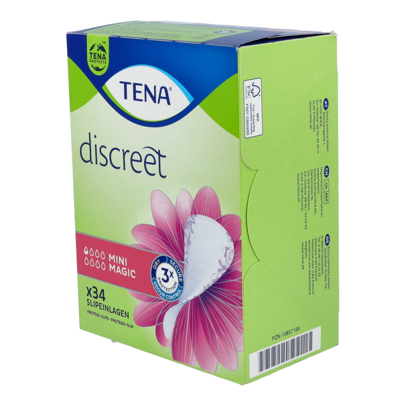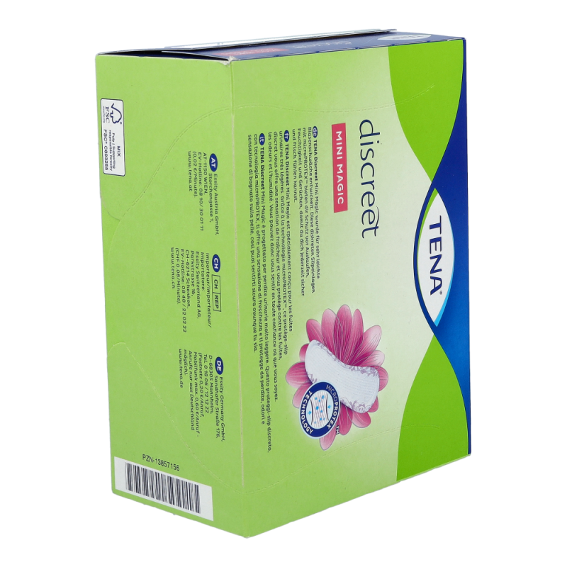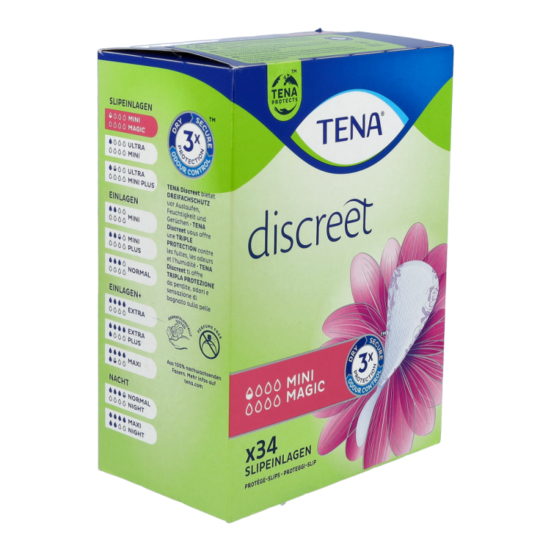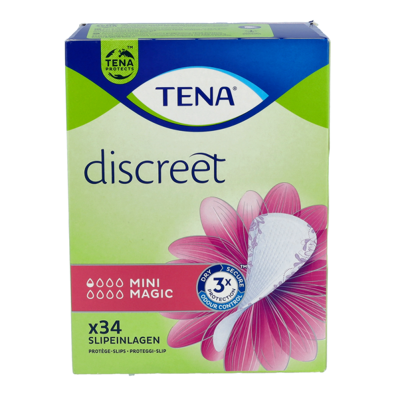 Tena Discreet Mini Magic bietet trotz ihrer minimalen Größe sicheren Schutz sowohl bei mittlerer Blasenschwäche und leichtem Harnverlust, als auch gelegentlichen Tröpfchen. Diskret und sicher.