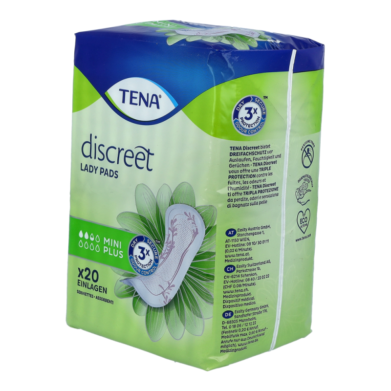Tena Lady Discreet Mini Plus – die diskrete und sichere Einlage für leichte bis mittlere Blasenschwäche.