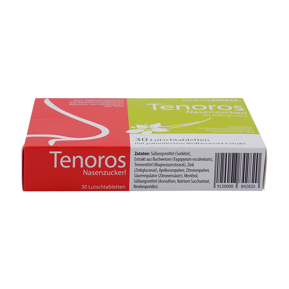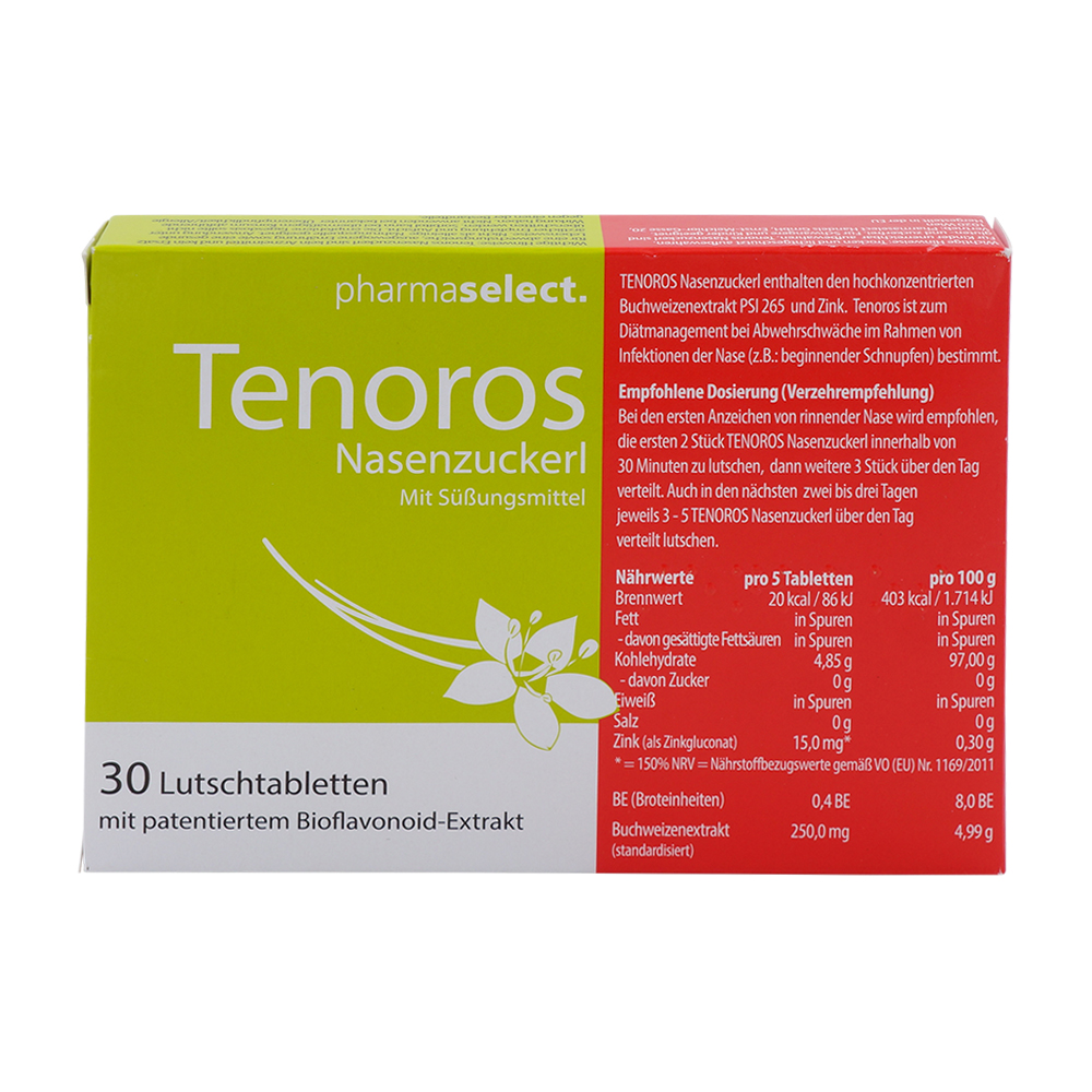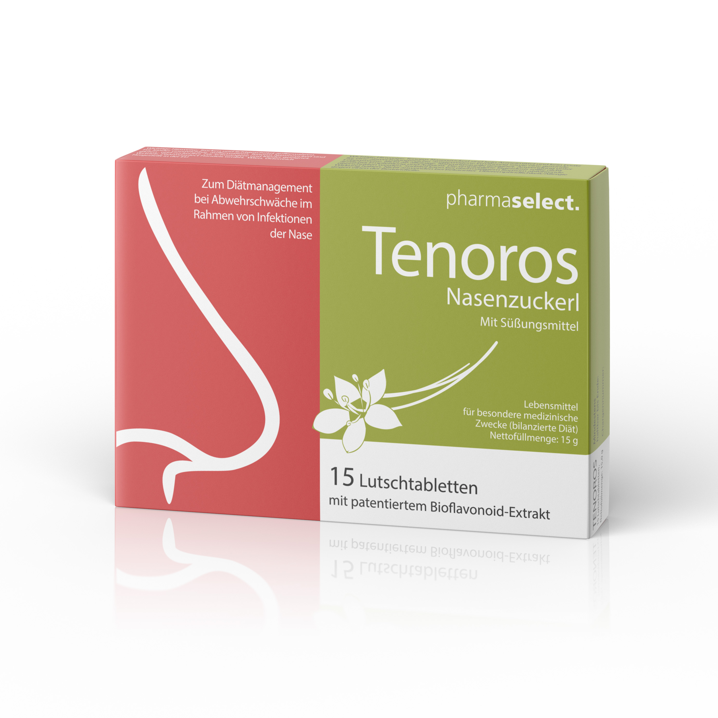 TENOROS® Nasenzuckerl ist eine pflanzliche Lutschtablette, die bei den ersten Anzeichen einer Erkältung eingenommen werden kann.