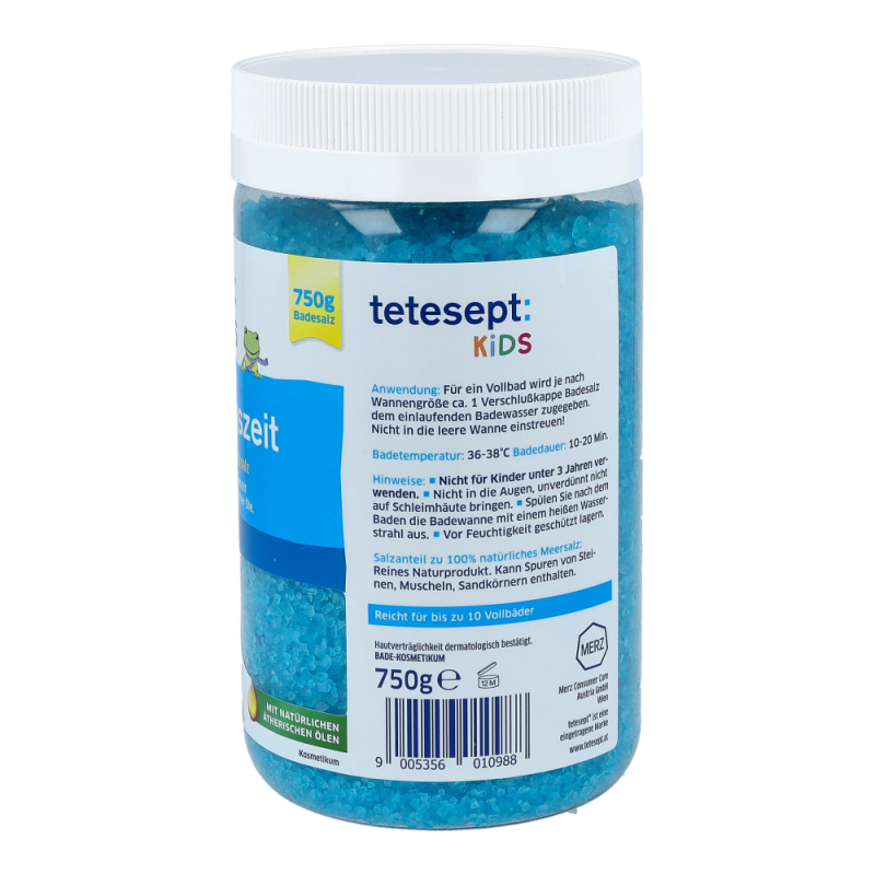 Tetesept Meersalz – Um die wohltuende Wirkung des Meereswassers für ein angenehmes Wannenbad zu nutzen, hat tetesept naturreines Meeressalz mit bewährten Wirkstoffen der Badetherapie kombiniert. Die hautgesunden tetesept Meeressalze enthalten 100 Prozent naturreines Meeressalz und sind frei von Konservierungsstoffen. Das Salz ist natürlich-grobkörnig, löst sich im Wasser jedoch sehr schnell auf.