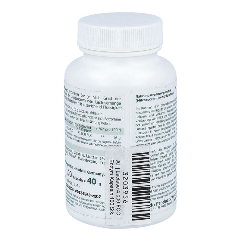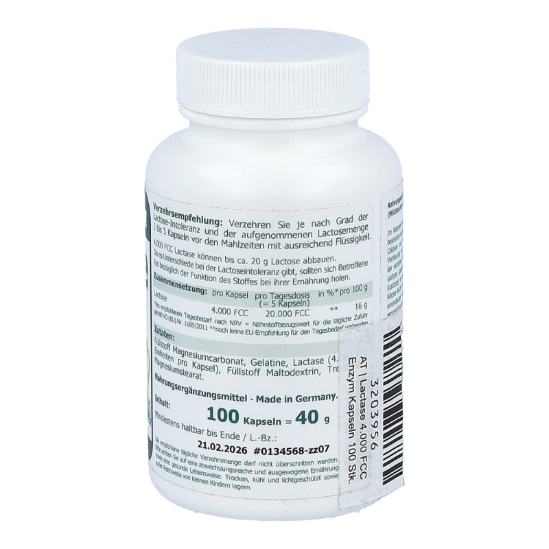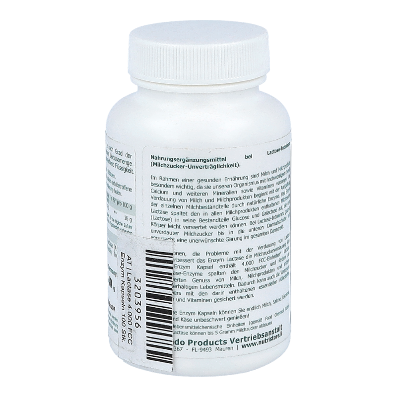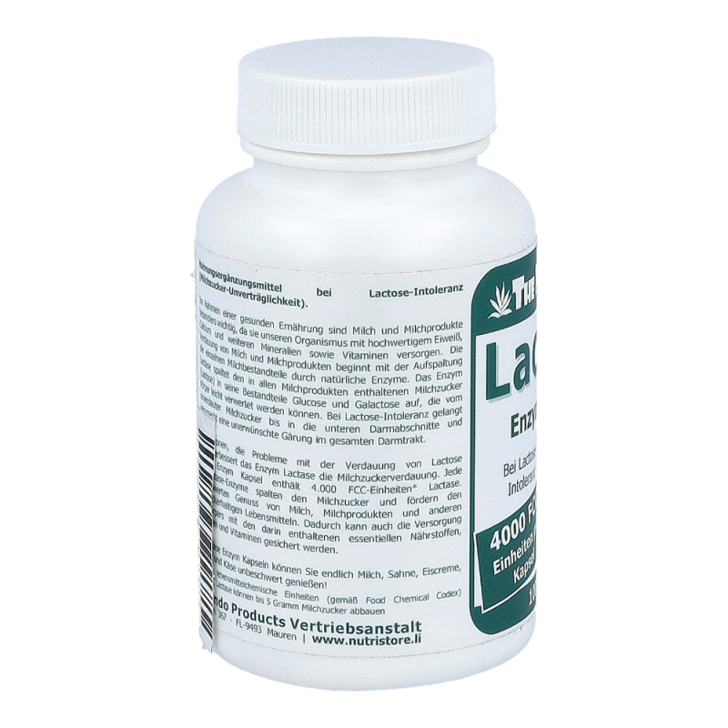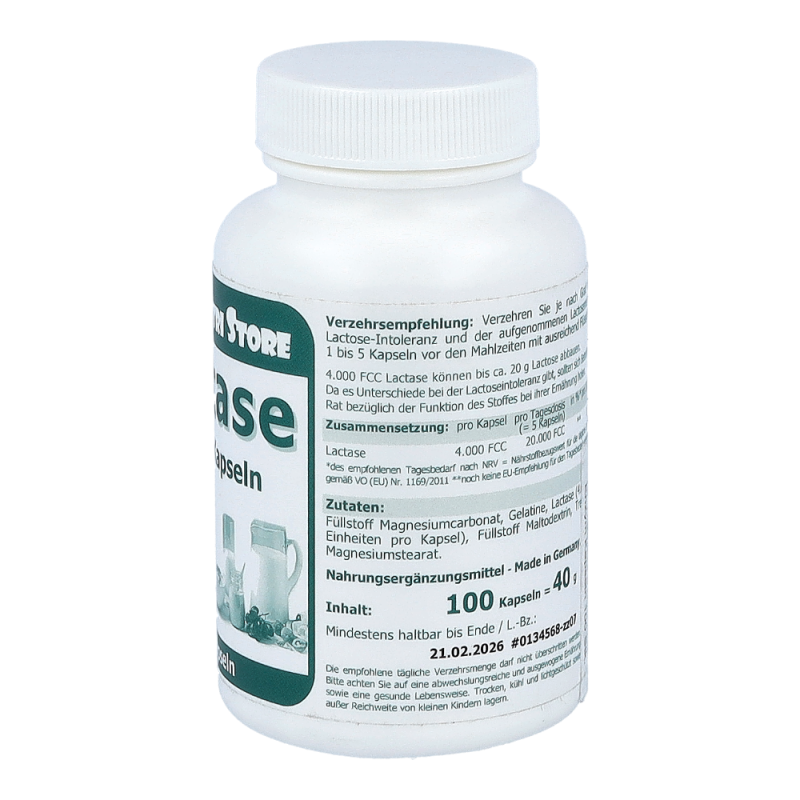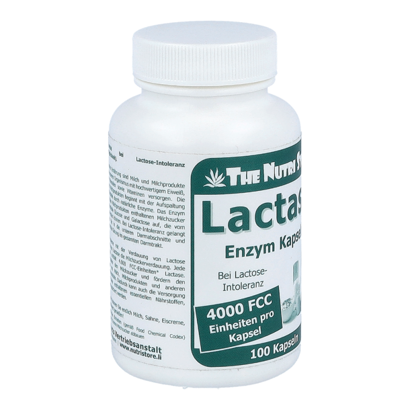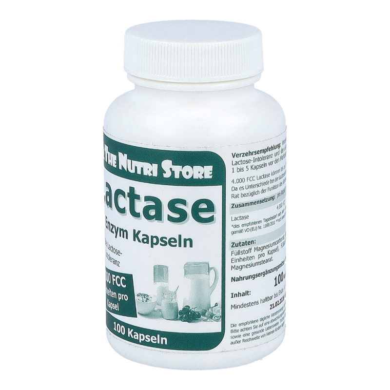 The Nutri Store Lactase Enzym 4.000 FCC Kapseln – Bei Personen, die Probleme mit der Verdauung von Lactose haben, verbessert das Enzym Lactase die Milchzuckerverdauung. Jede Lactase Enzym Kapsel enthält 4.000 FCC-Einheiten* Lactase. Die Lactase-Enzyme spalten den Milchzucker und fördern den unbeschwerten Genuss von Milch, Milchprodukten und anderen milchzuckerhaltigen Lebensmitteln. Dadurch kann auch die Versorgung des Körpers mit den darin enthaltenen essentiellen Nährstoffen, Mineralien und Vitaminen gesichert werden.