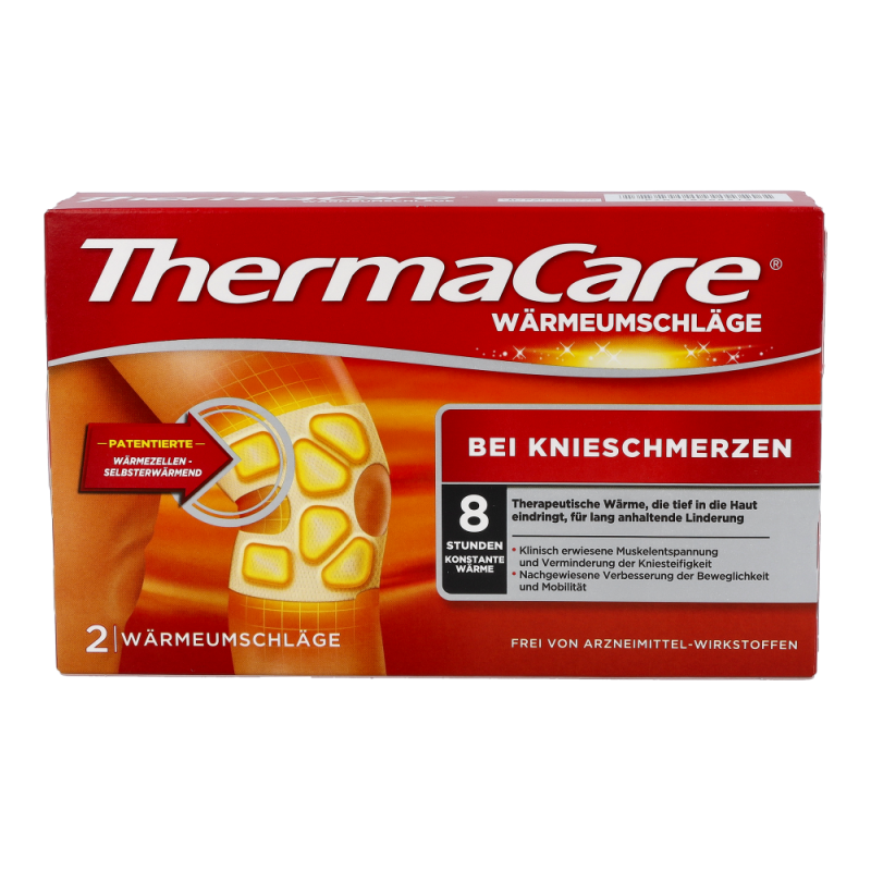 • ThermaCare Knie Wärmeumschläge eignen sich besonders zur Behandlung von Knieschmerzen und Muskelsteifheit. Dieses Produkt besteht aus 12 patentierten Wärmezellen mit einer ergonomischen und flexiblen Form, die sich perfekt an Ihr Knie anpasst.