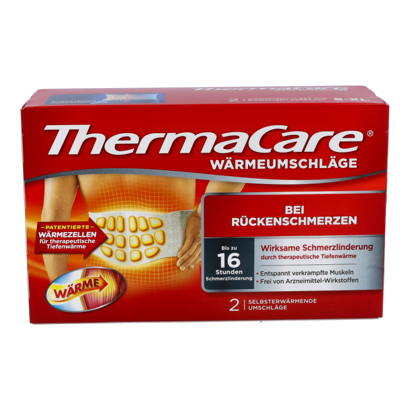 ThermaCare Rückenumschläge lindern akute Schmerzen in der Muskulatur, den Gelenken oder dem Gewebe im unteren Rückenbereich. Die natürliche, aber sehr effektive Wirkung wird durch eine Kombination aus Tiefenwärme (therapeutische 40°C) und Langzeitwärme (für mind. acht Stunden) erreicht. Während der Anwendung sind die dünnen ThermaCare Rückenumschläge komfortabel und diskret unter der Kleidung zu tragen und unterstützen so die Mobilität im Alltag – profitieren Sie von hohen Rabatten und dem großen Sortiment einer Standortapotheke!