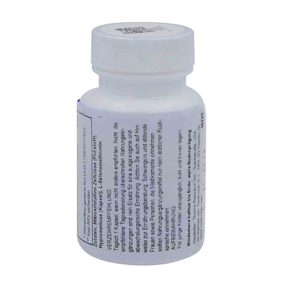 Thorne Research Selenomethionine Kapseln 60 Stk. enthalten 200 mcg gut bioverfügbares aminosäuregebundenes Selen, welches zum Schutz der Körperzellbestandteile vor oxidativen Schäden, zur normalen Funktion des Immunsystems und zur normalen Schilddrüsenfunktion beiträgt. Es trägt außerdem zur normalen Spermatogenese und zum Erhalt von normalen Haaren und Nägeln bei.