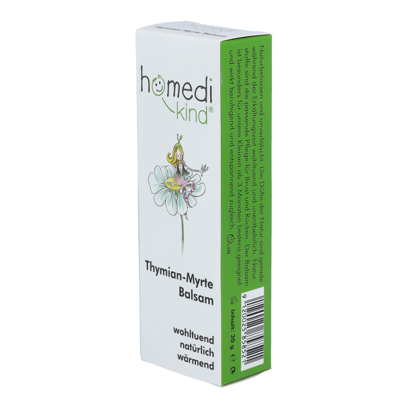 Thymian Myrtenbalsam ist besonders für die Kleinen ab 3 Monaten beruhigend und entspannend zugleich. Die enthaltenen Düfte der Natur sind gerade während der Erkältungszeit wohltuend und unentbehrlich. Naturstoffe sind die passende Pflege für Brust und Rücken.