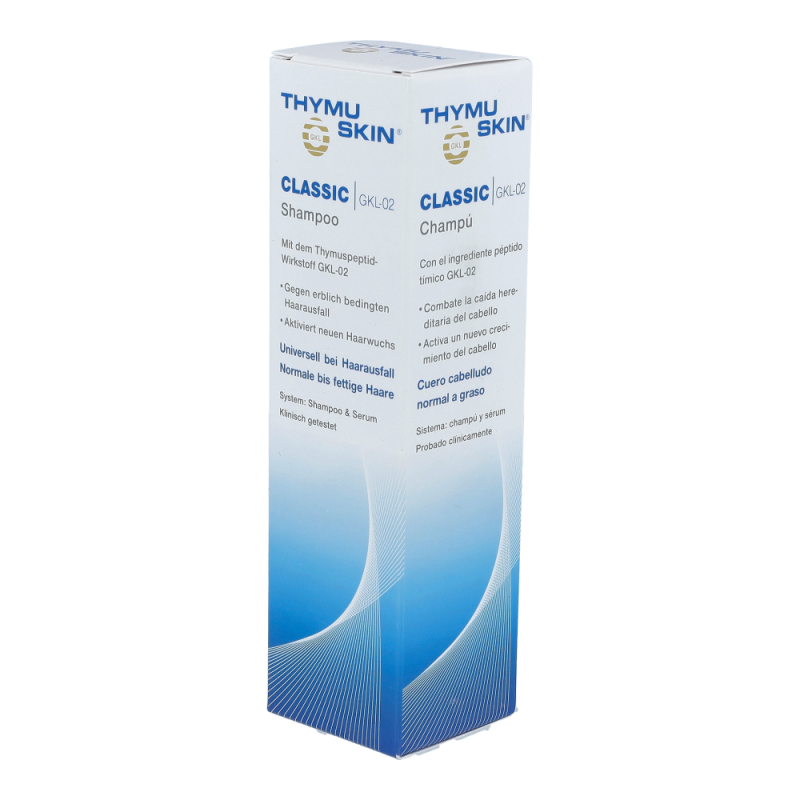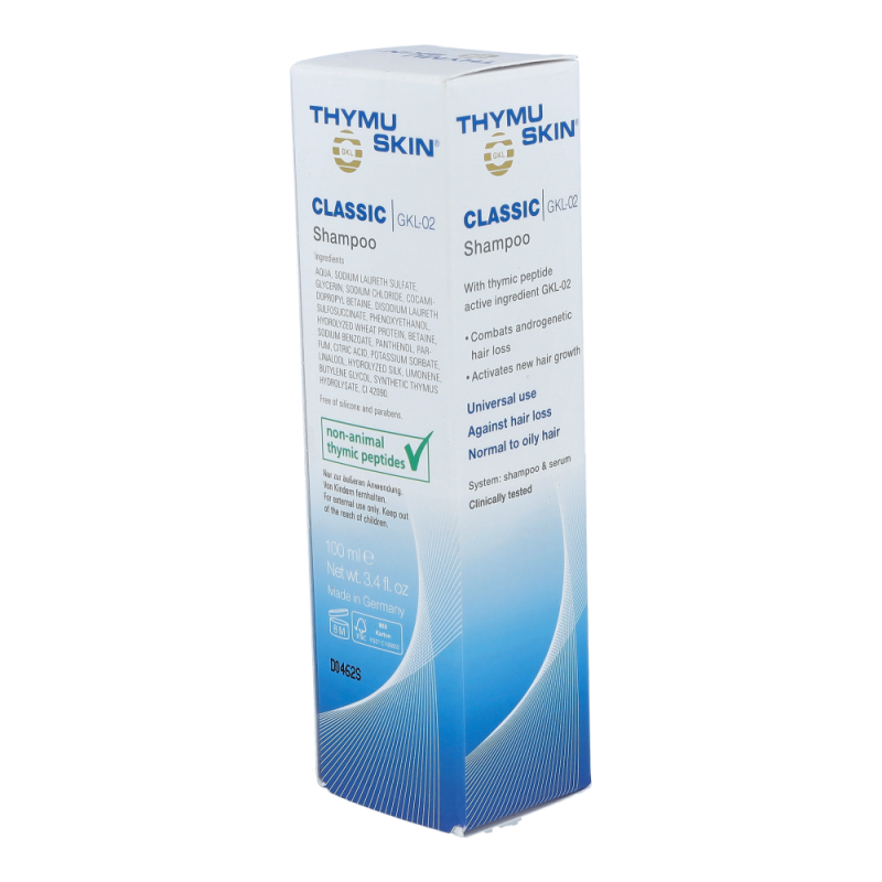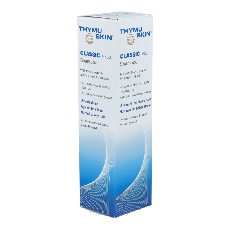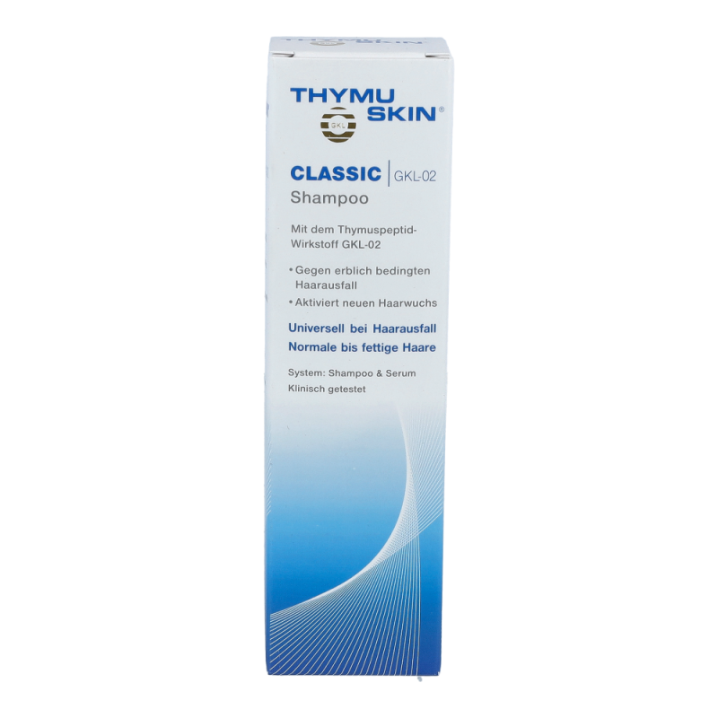 Thymuskin Shampoo ist die erste Wahl bei Haarausfall. Kombinierbar mit allen Thymuskin Seren.