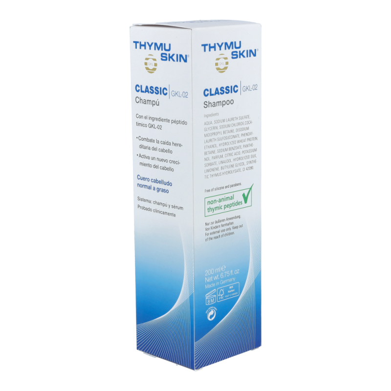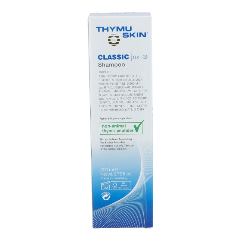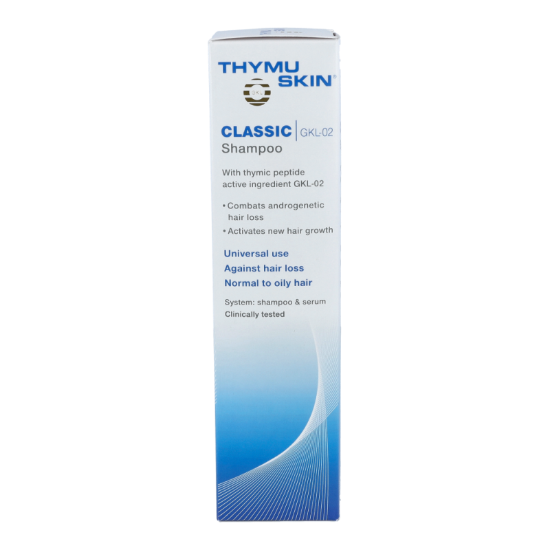 Thymuskin Shampoo ist die erste Wahl bei Haarausfall. Kombinierbar mit allen Thymuskin Seren.