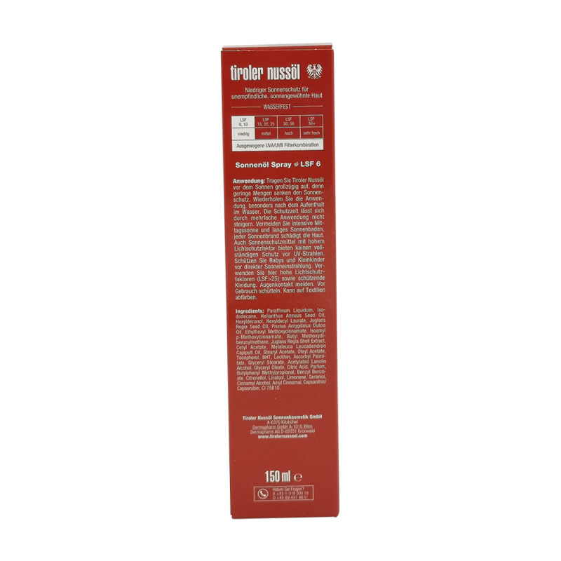 Tiroler Nussöl Sonnenöl Spray wasserfest LSF 6 150 ml