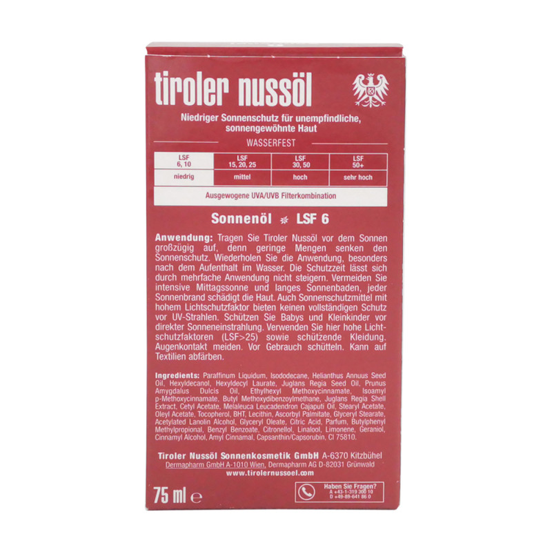 Tiroler Nussöl Sonnenöl wasserfest 75 ml LSF 6