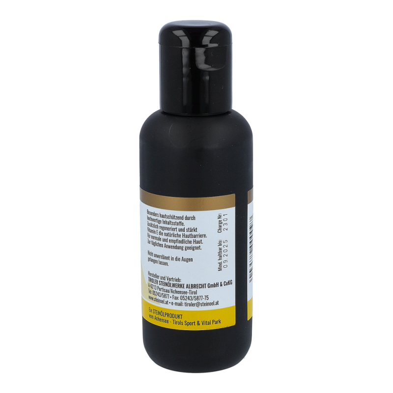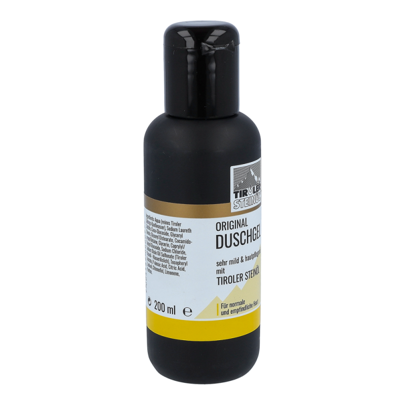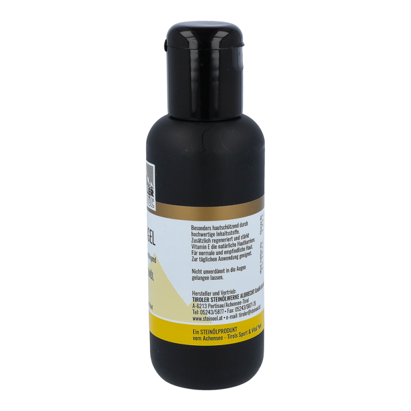 Tiroler Steinöl Duschgel wirkt besonders hautschützend und pflegend durch hochwertige Inhaltsstoffe pflanzlichen Ursprungs sowie Vitamin E. Für normale und empfindliche Haut, pH-hautneutral. Angenehm rückfettende Wirkung, zur täglichen Anwendung bestens geeignet