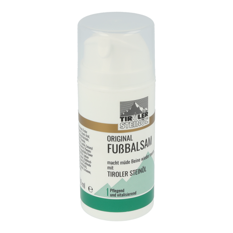 Tiroler Steinöl Fußbalsam macht besonders übermüdete und strapazierte Füsse rasch wieder munter. Vitalisierend und pflegend.