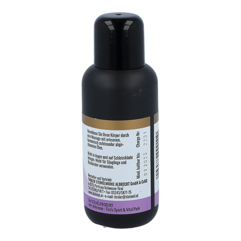 Tiroler Steinöl Massageöl lädt zum Verwöhnen Ihres Körpers durch eine Massage mit harmonisch abgestimmten, erlesenen Ölen ein.