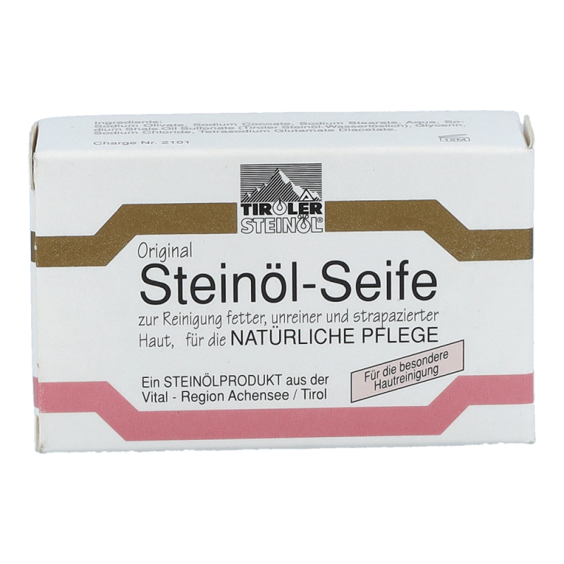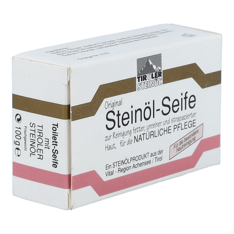 Tiroler Steinöl Seife zur schonenden, regelmäßigen Pflege und Reinigung empfindlicher, fettiger und unreiner Haut besonders bei jugendlichen Hautproblemen