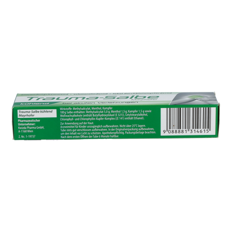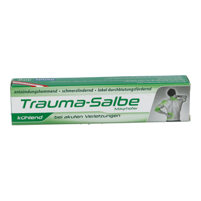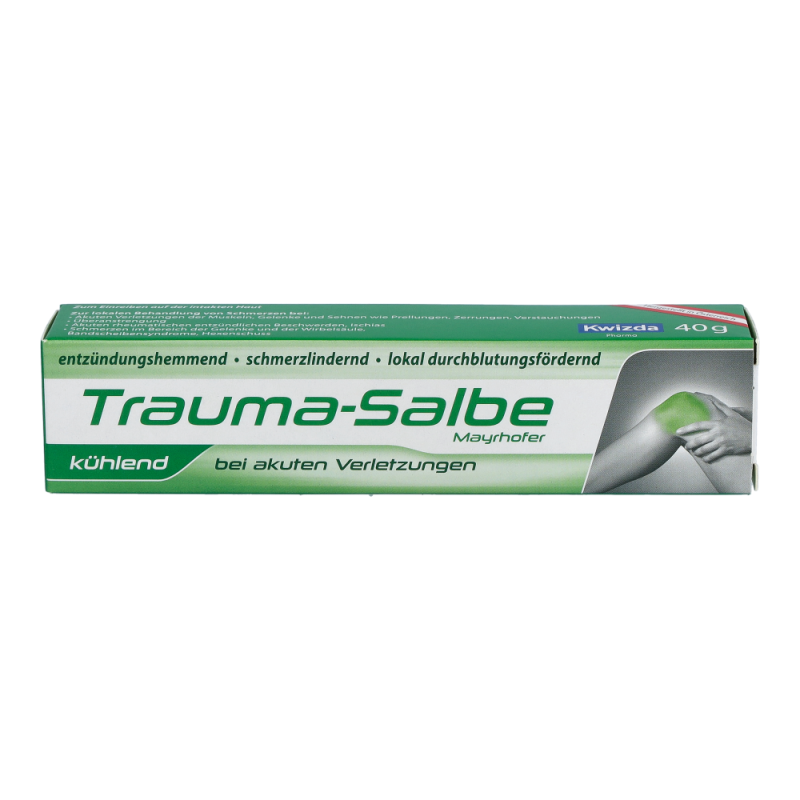 Trauma-Salbe kühlend Mayrhofer ist für die lokale Behandlung von Schmerzen bei akuten Verletzungen des aktiven Bewegungsapparates geeignet. Es wird eine rasche Schmerzlinderung und Muskelentspannung bei gleichzeitiger Kühlung erreicht. Methylsalicylat wirkt schmerzstillend und entzündungshemmend. Menthol hat einen kühlenden Effekt und ist leicht anästhesierend.