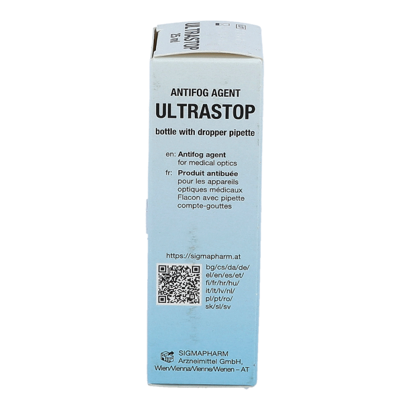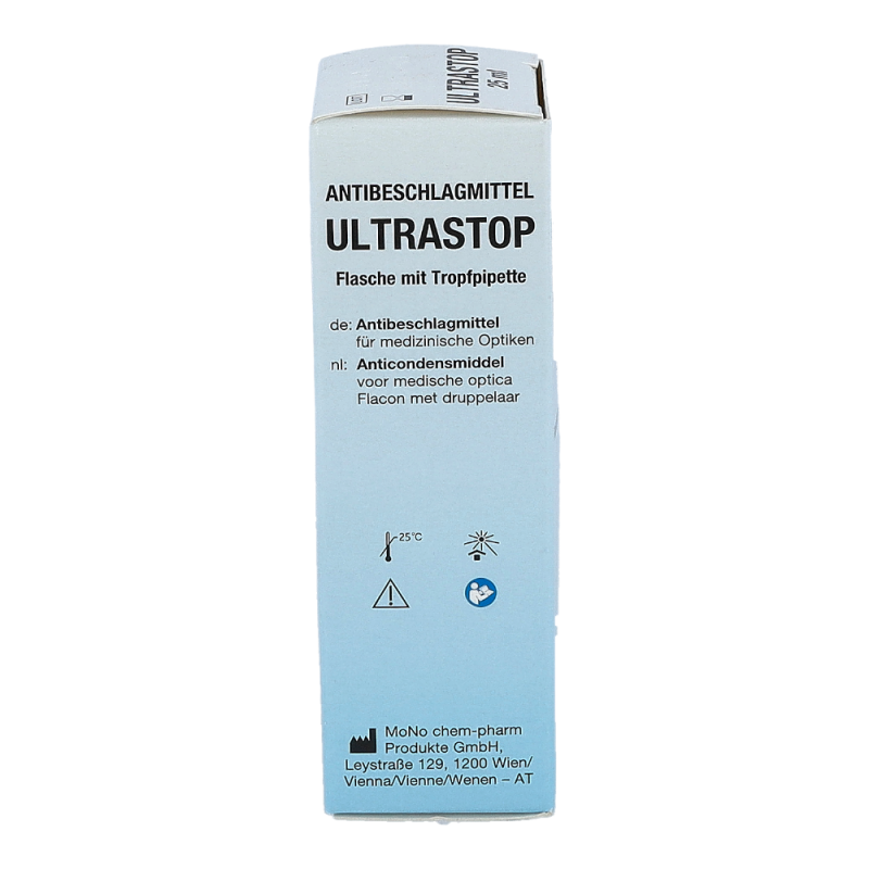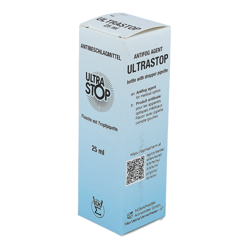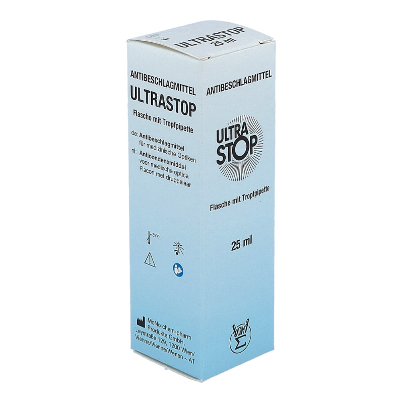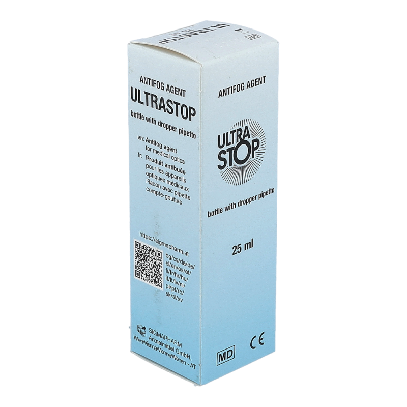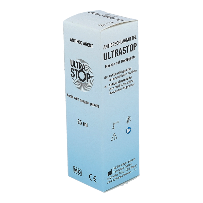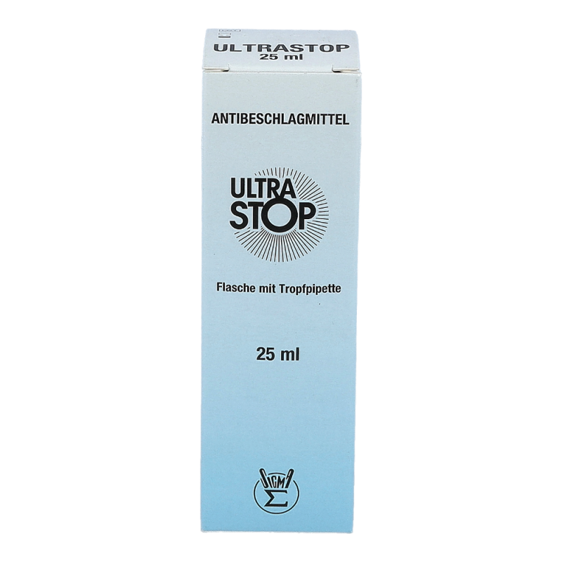 Ultrastop ist ein hochwertiges Antibeschlagmittel für medizinische Endoskope und Optiken. Die besondere Wirkung von ULTRASTOP besteht in der Ausbildung einer speziellen Schicht an der Oberfläche der Optiken. Durch diesen äußerst dünnen und absolut transparenten Film wird beim Kondensieren von Wasserdampf eine Tröpfchenbildung und damit das Beschlagen der Oberfläche zuverlässig verhindert.
