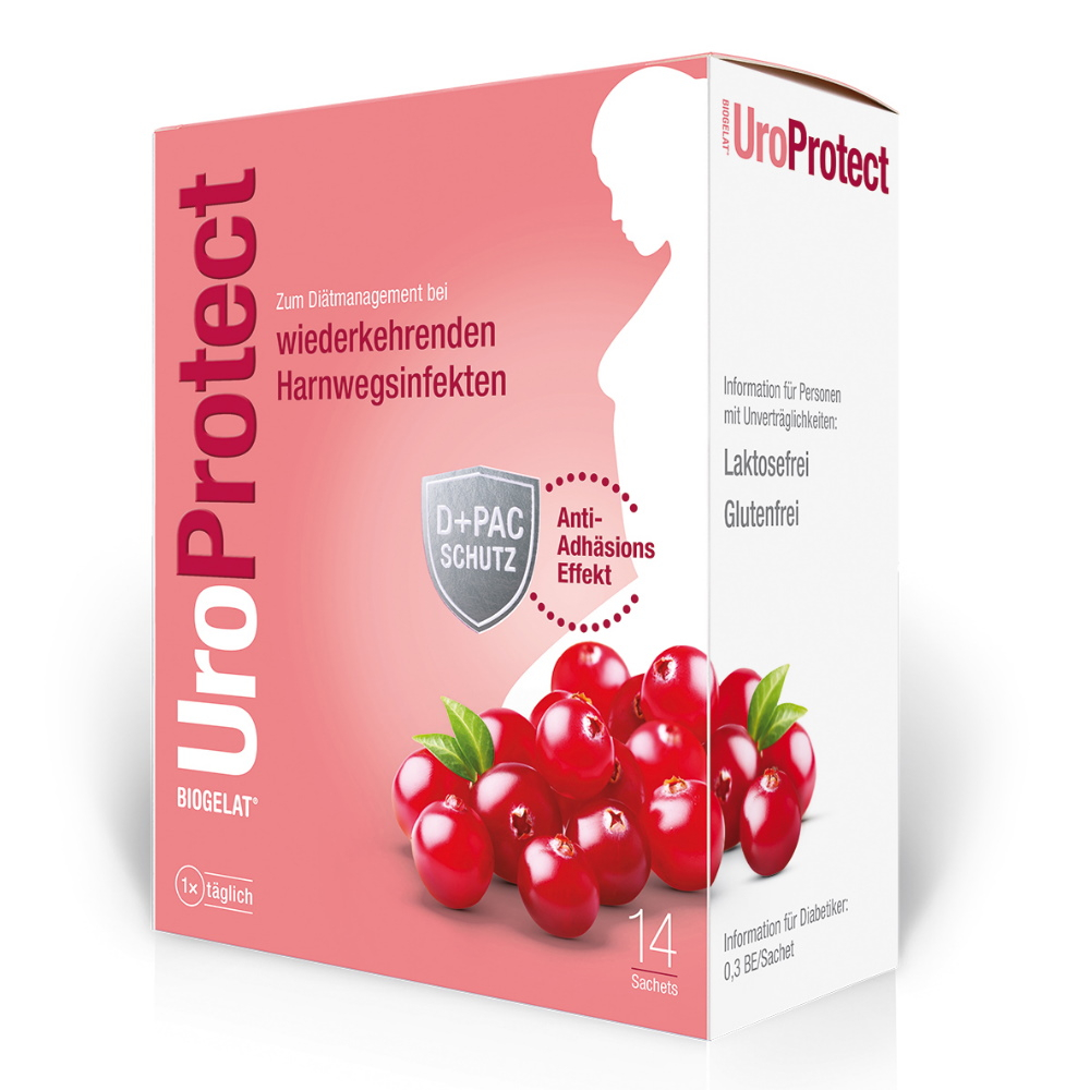 UroProtect® bei wiederkehrenden Harnwegsinfekten  Zum Diätmanagement bei wiederkehrenden Harnwegsinfekten  Anti-adhäsive Wirkung von D-Mannose & Cranberry  Vitamine C und D3 für das Immunsystem  Ideal dosiert für eine langfristige Einnahme  Auch als Liquidum erhältlich Laktosefrei, glutenfrei, ohne Konservierungsstoffe, ohne künstliche Farbstoffe. Lebensmittel für besondere medizinische Zwecke (bilanzierte Diät). URO-0149_1909