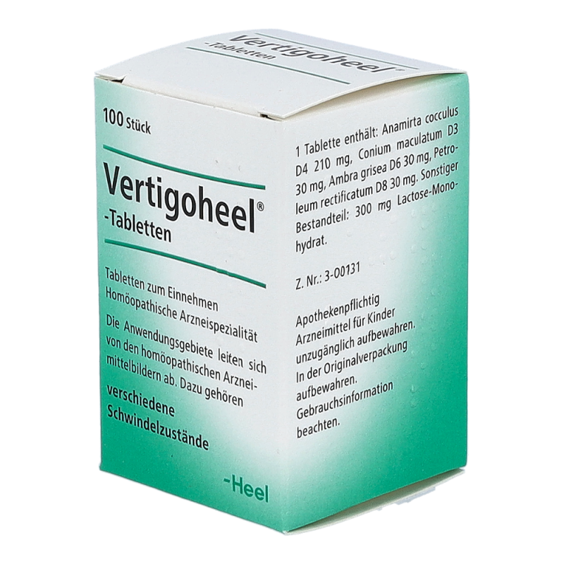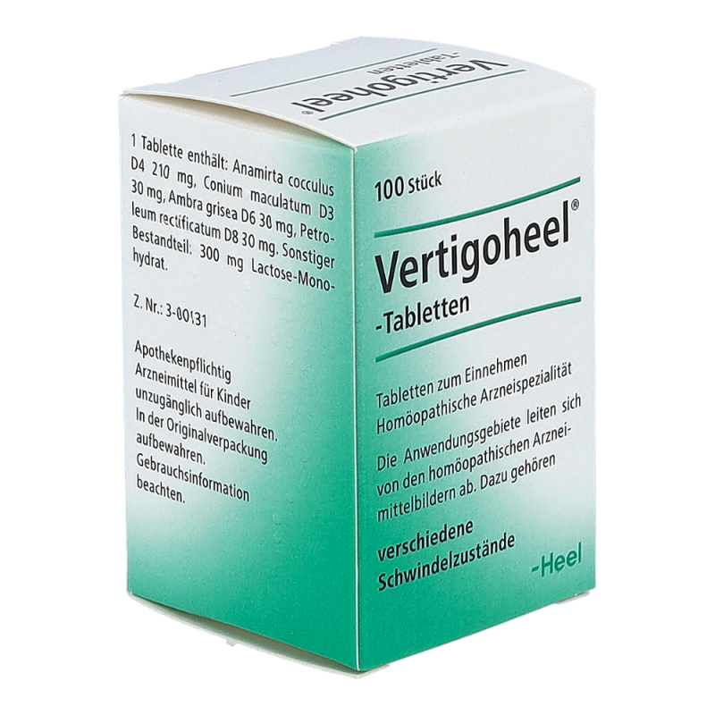 Vertigoheel-Tabletten sind ein hom&ouml opathisches Kombinationsarzneimittel. Die Wirkstoffe sind: Anamirta cocculus D4, Conium maculatum D3, Ambra grisea D6 und Petroleum rectificatum D8. Vertigoheel&reg -Tabletten helfen bei Schwindel aller Art. Sie erm&uuml den nicht und beeintr&auml