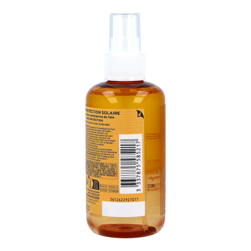VICHY Ideal Soleil Beta Carotin Spray LSF30 besticht durch seinen hohen Schutz und seiner extrem frischen und leichten Textur. Die ultra-leichte Textur enthält außerdem Beta-Carotin und wirkt bräunungsintensivierend. Der Sonnenschutz wurde unter dermatologischer Aufsicht an empfindlicher Haut getestet und schützt die Haut vor Sonnenbränden und Photoalterungen.