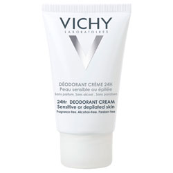 VICHY Deo Creme Anti-Transpirant 24h ist eine milde, speziell auf die empfindliche und epilierte Haut abgestimmte Formulierung. Angereichert mit beruhigendem, kräftigendem und regenerierendem Vichy Thermalwasser .