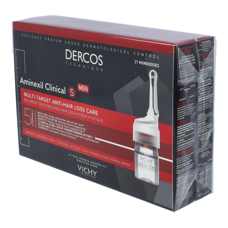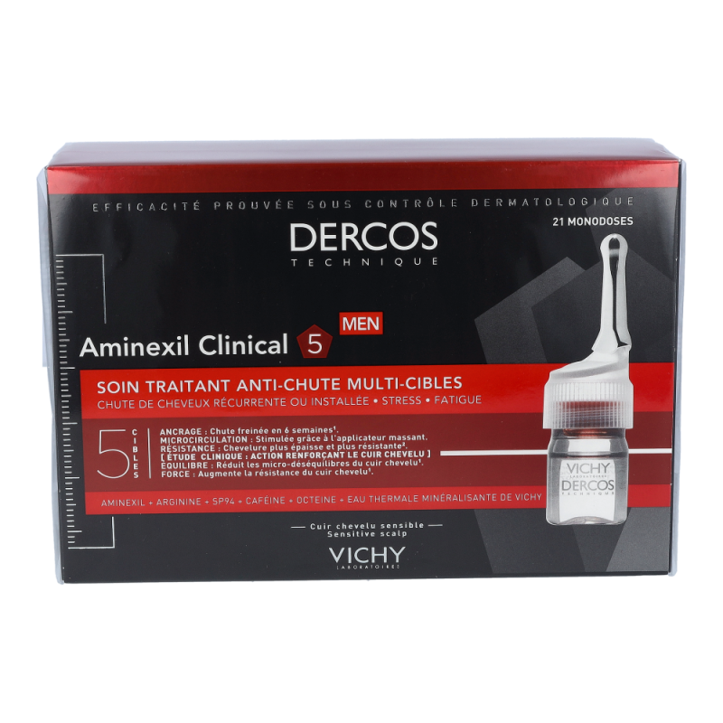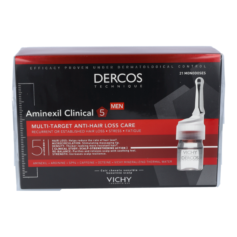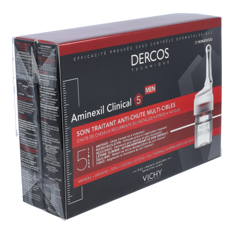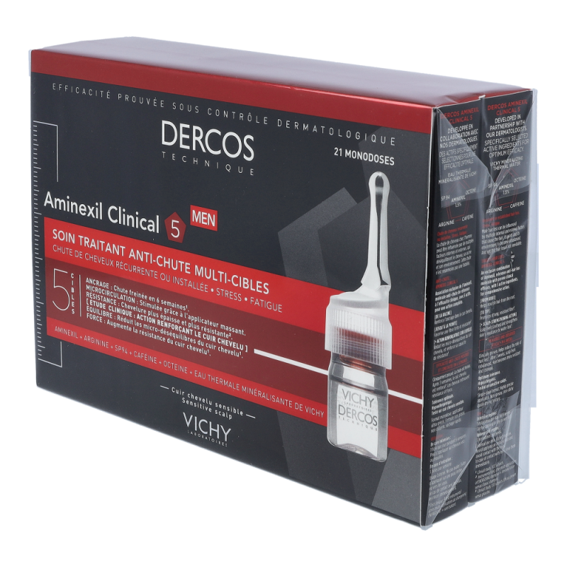 VICHY Dercos Aminexil Clinical 5 Männer ist eine Ampullen-Kur zur Behandlung von Haarausfall speziell für Männer.