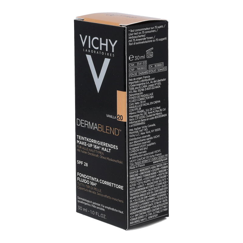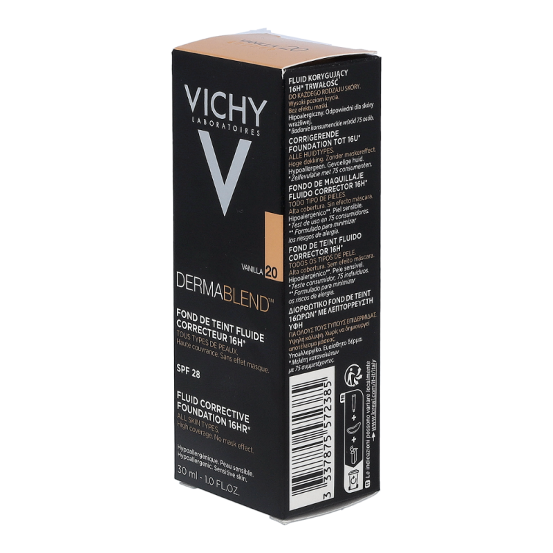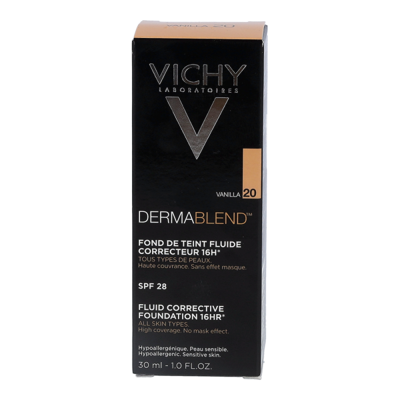VICHY Dermablend Teint-korrigierendes Make-Up 20 Vanilla ist ideal zum Abdecken von leichten Hautunregelmäßigkeiten wie Rötungen, Mitessern, Augenringen, geplatzten Äderchen oder kleinen Narben.