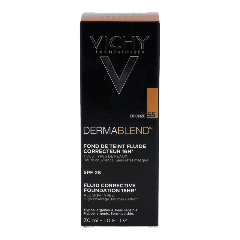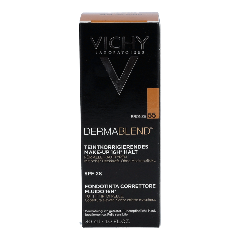 VICHY Dermablend Teint-korrigierendes Make-Up 55 Bronze ist ideal zum Abdecken von leichten Hautunregelmäßigkeiten wie Rötungen, Mitessern, Augenringen, geplatzten Äderchen oder kleinen Narben.