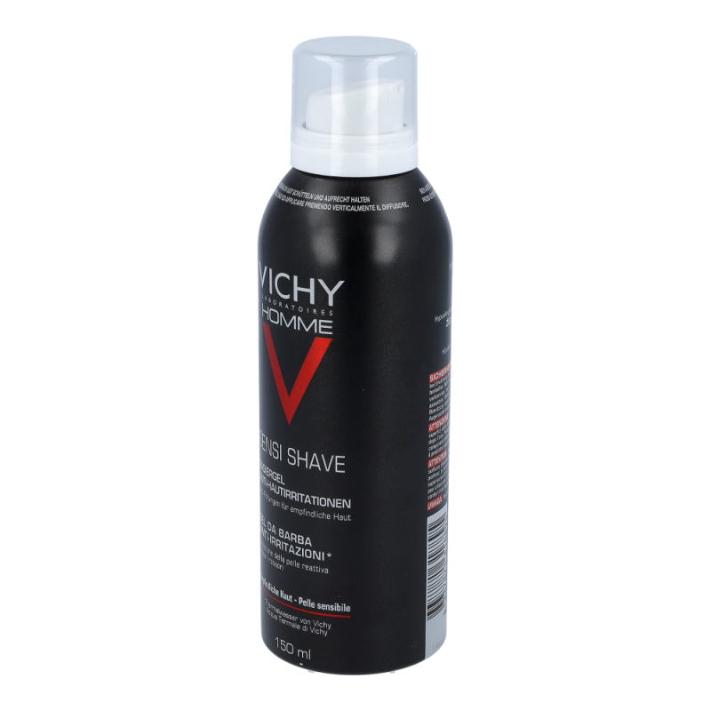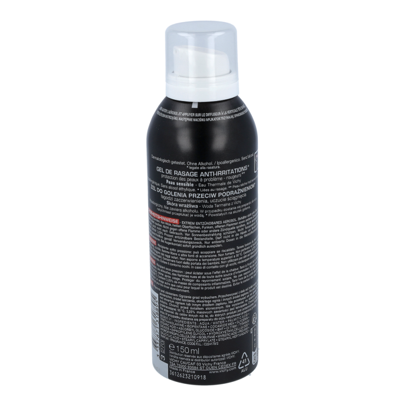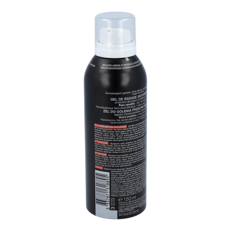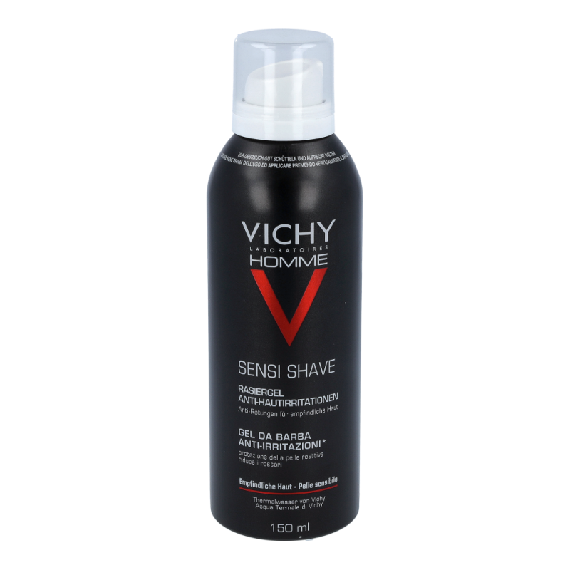 VICHY Homme Rasiergel für Männer mit empfindlicher oder Problemhaut (eingewachsenen Barthaaren, Pickel nach der Rasur…), die zu Rötungen oder Irritationen nach der Rasur neigt.