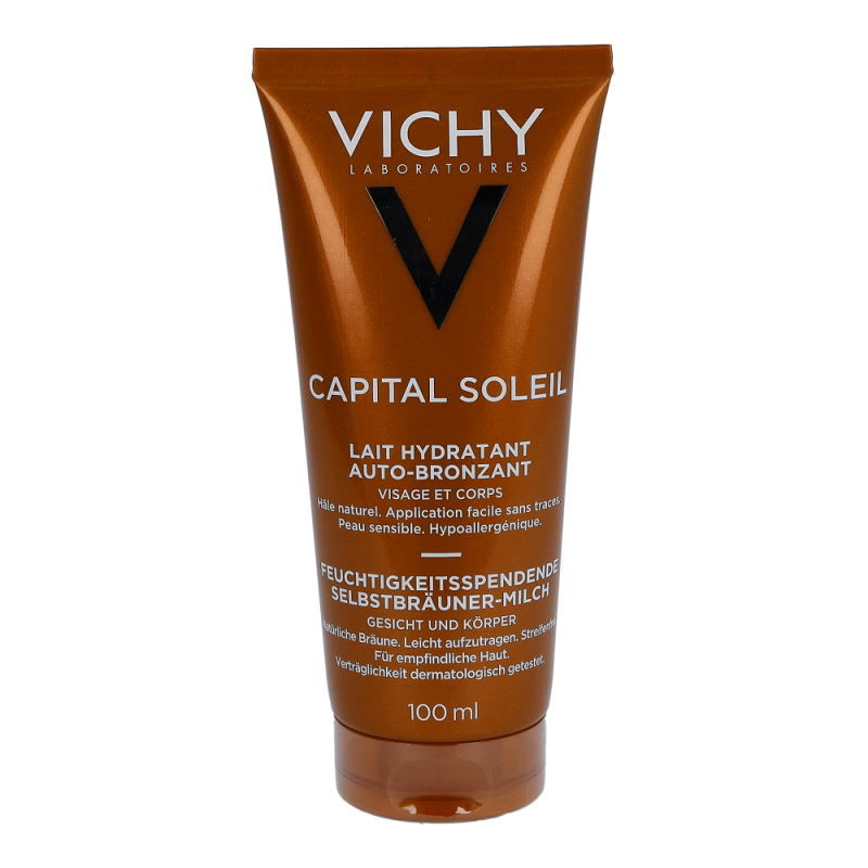 VICHY Capital Soleil Feuchtigkeitsspendende Selbstbräuner-Milch für Gesicht und Körper – Für Frauen, die einen feuchtigkeitsspendenden Selbstbräuner suchen. Schon nach 1 Stunde erhält man eine einheitliche Bräune, die Haut wird 8 Stunden lang mit Feuchtigkeit versorgt. Mit dem Vitamin E bleibt die Bräune frisch.