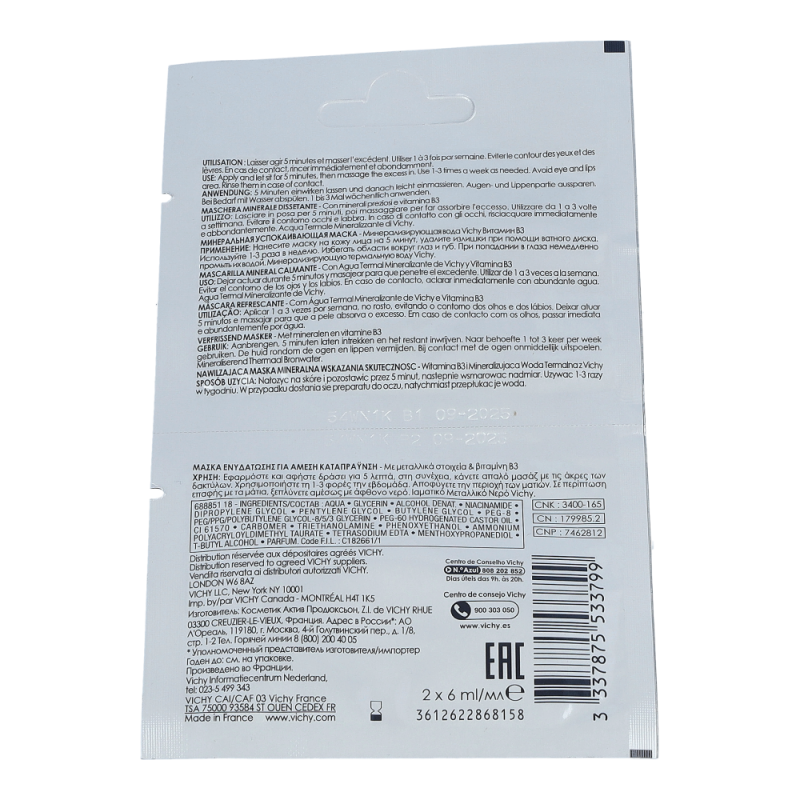 Die feuchtigkeitsspendende Mineral-Maske von Vichy mit Thermalwasser und Vitamin B3 als Extra-Feuchtigkeits-Booster, um den Durst der Haut wie mit einem Glas taufrischen Wasser zu stillen.