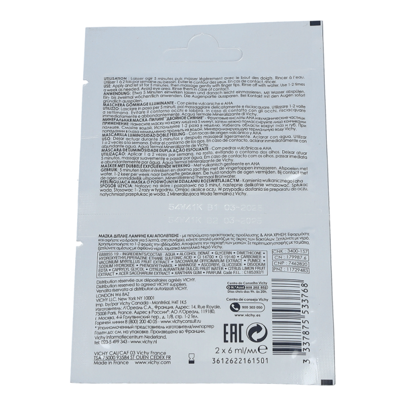 Die hauterneuernde Mineral-Maske von VICHY mit Vulkangestein und Fruchtsäure (AHA) bekämpft sanft abgestorbene Zellen, verfeinert das Hautbild und schenkt dem Teint frische Ausstrahlung.