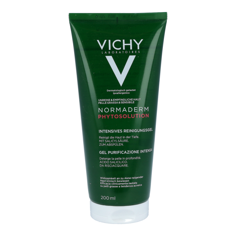 VICHY Normaderm Phytosolution Intensives Reinigungsgel mit sanfter PH-hautneutraler Formel eignet sich zur intensives Reinigung gegen Hautunreinheiten. Geeignet für unreine, empfindliche Haut.