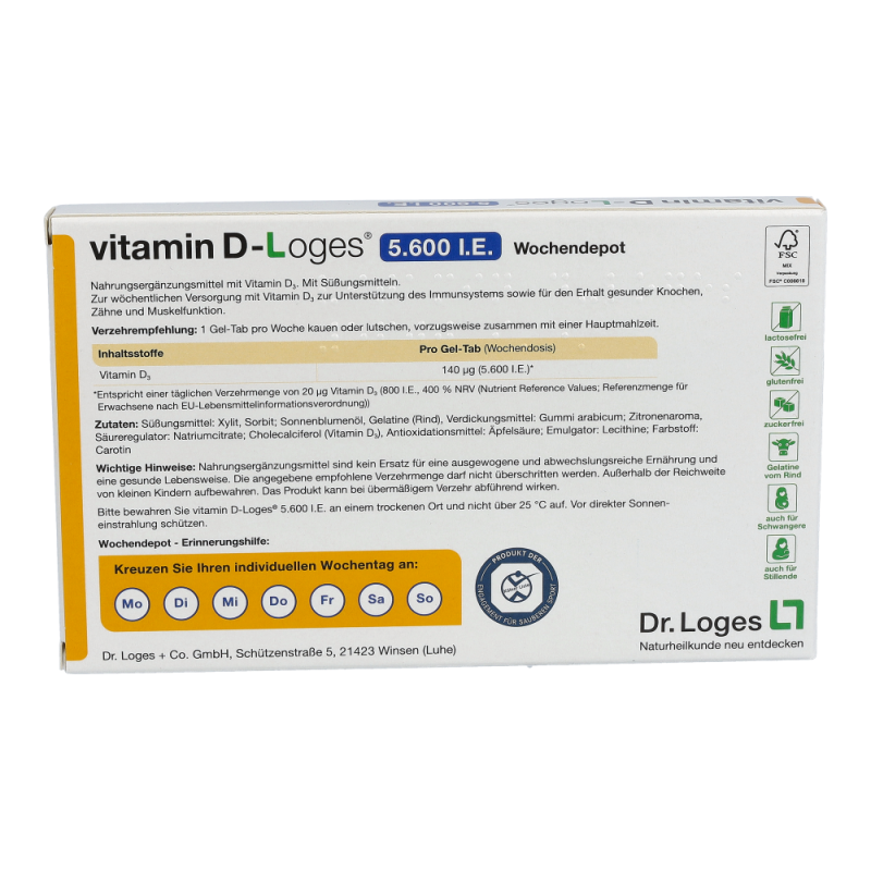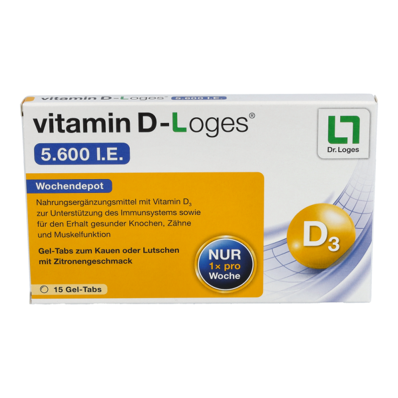 Vitamin D Loges 5,600IE Kautabletten zur einfachen Versorgung mit Vitamin D. Die Tabletten sind zum Kauen oder Lutschen und schmecken Kindern ab einem Jahr und der ganzen Familie dank dem fruchtigen Geschmack.