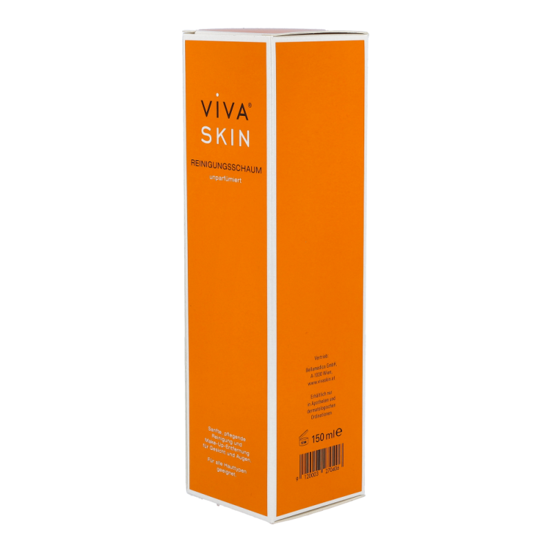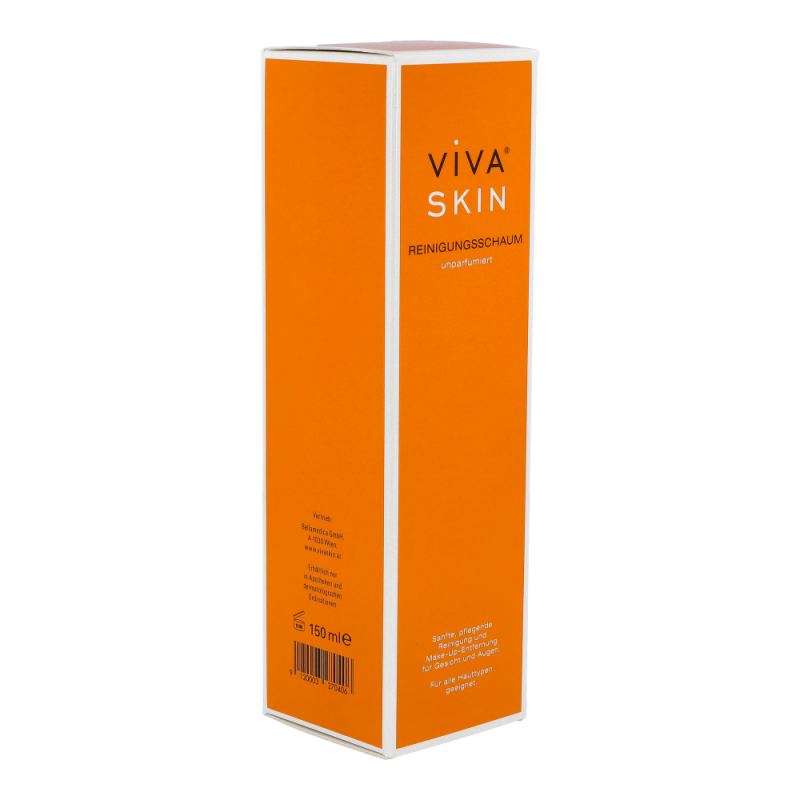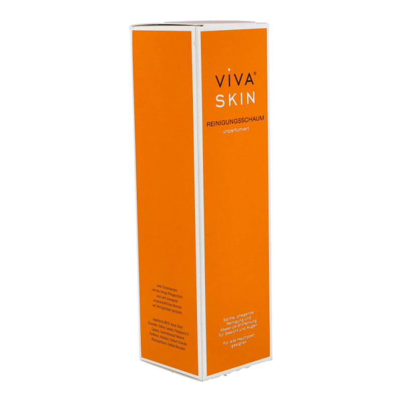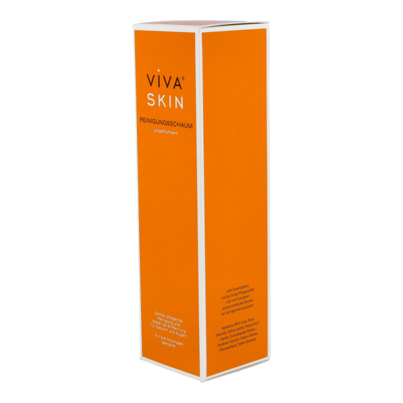 Viva Skin Reinigungsschaum reinigt die Gesichtshaut und das Dekolleté angenehm sanft, entfernt überschüssiges Hautfett und befreit die Haut gründlich von Makeup Rückständen. Dabei wirkt der pflanzliche Inhaltsstoff Allantoin hautberuhigend und gleichzeitig bewahrt Panthenol der Haut ihre Feuchtigkeit und fördert ihre natürliche Barrierefunktion.