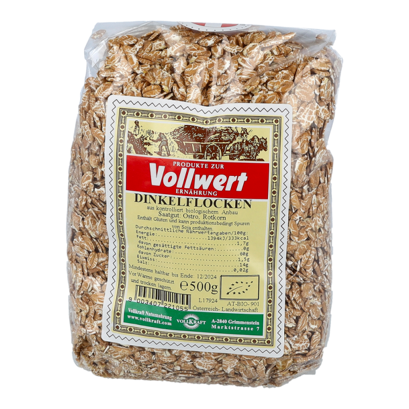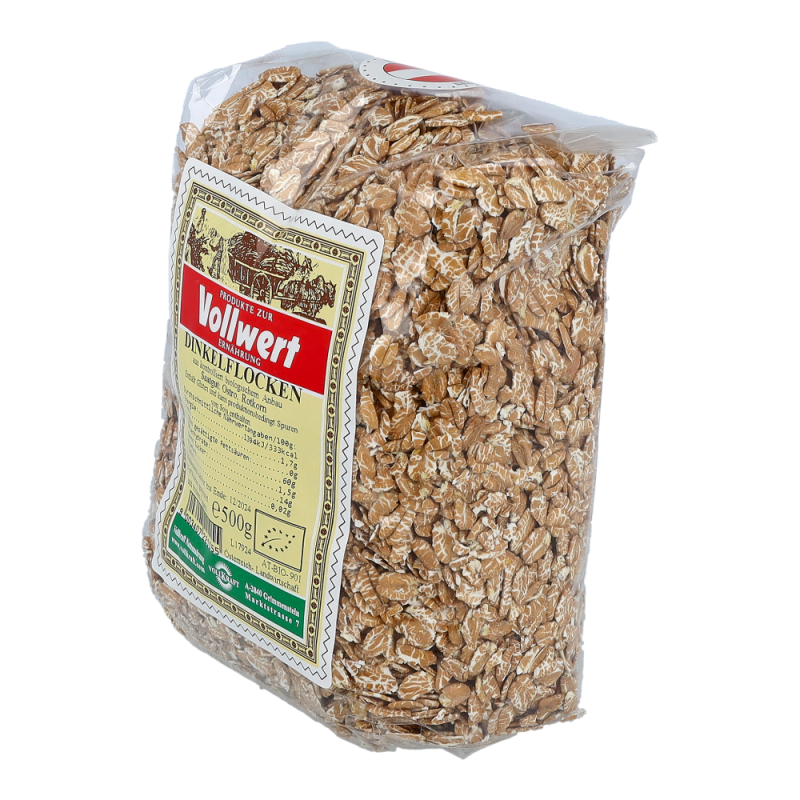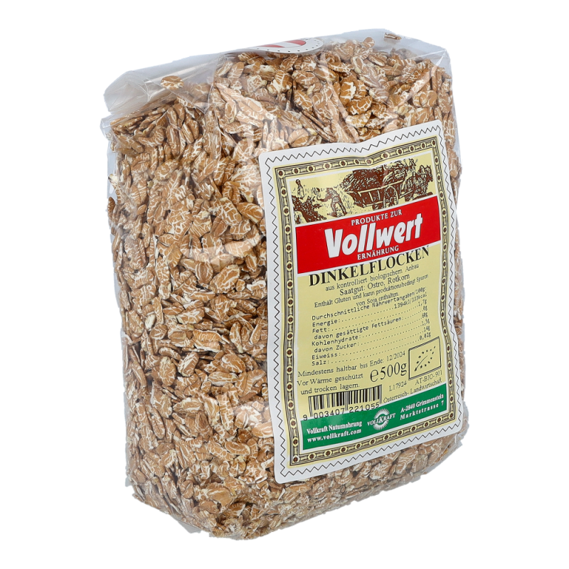 Vollkraft Dinkel Flocken kbA eignet sich ideal fürs Müsli. Dinkel ist eine alte Kulturform des Weizens und eigent sich gut als Weizenersatz.