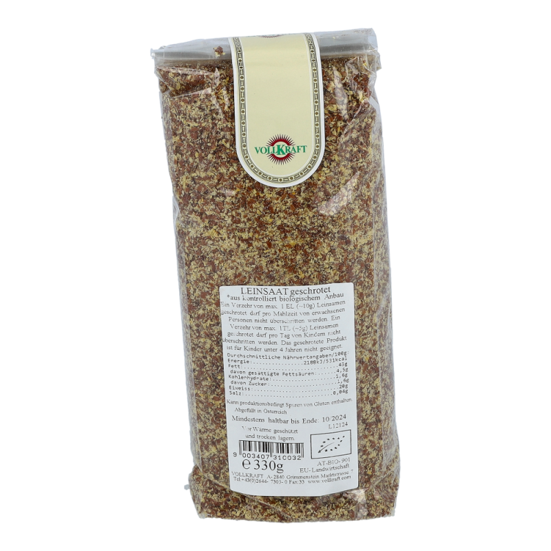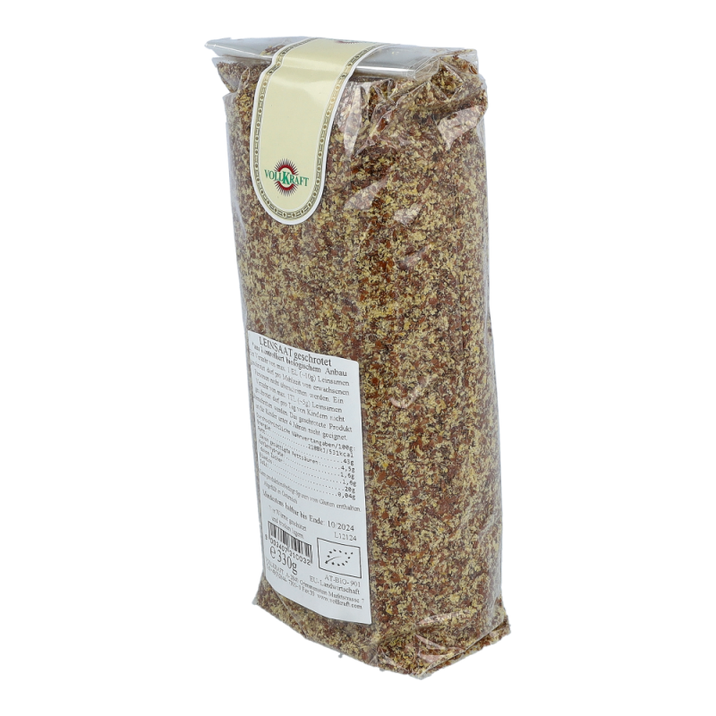 Vollkraft Leinsaat GESCHR kbA: Als Leinsaat oder Leinsamen bezeichnet man die flachen, tropfenförmigen Samen der Lein- oder Flachspflanze. Bei Verwendung der ganzen Kerne empfiehlt sich das Einweichen über Nacht.