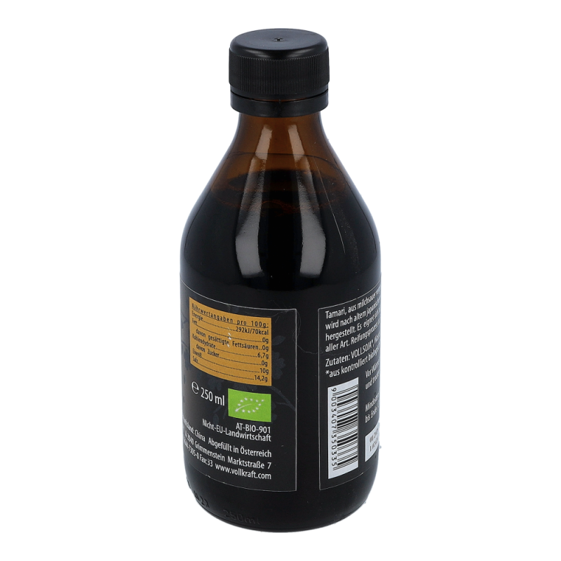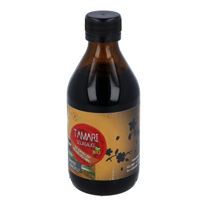 Vollkraft Tamari kbA: Die traditionelle hochwertige Sojasoße für die Naturküche aus biolog. Anbau, die vielseitig einsetzbar ist, verfeinert alle würzigen Gerichte. Sauce aus Sojabohnen, Milchsauervergoren, rechtsdrehende Milchsäure.