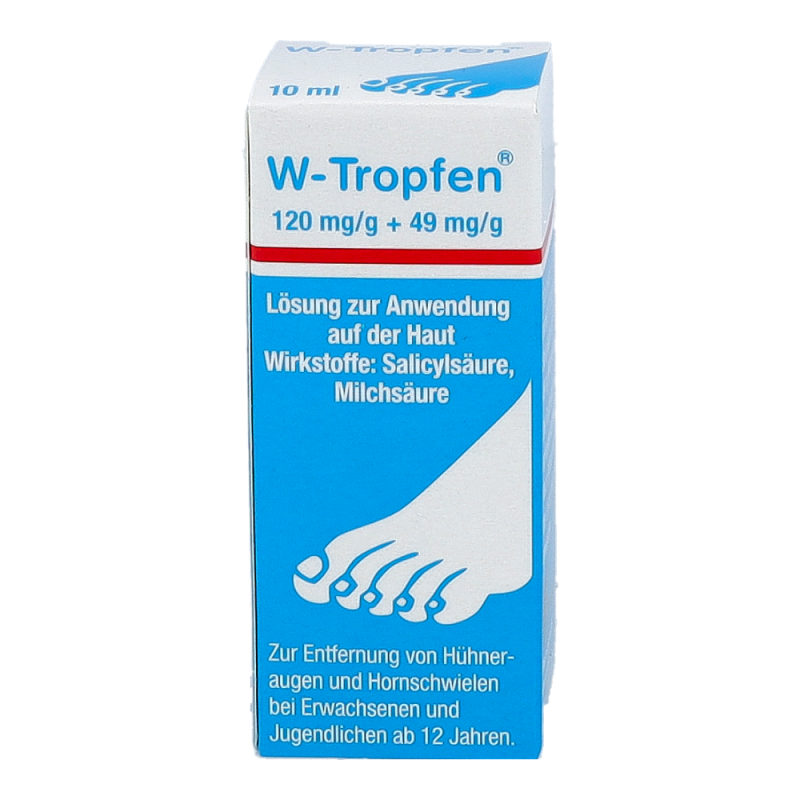 Auf die umgebenden gesunden Hautareale Vaseline auftragen. Eine dünne Schicht direkt auf das Hühnerauge bzw. die Hornschwiele auftragen und trocknen lassen.Bei Hornschwielen nur eine kleine Fläche auf einmal behandeln (max. Durchmesser von 2 cm).