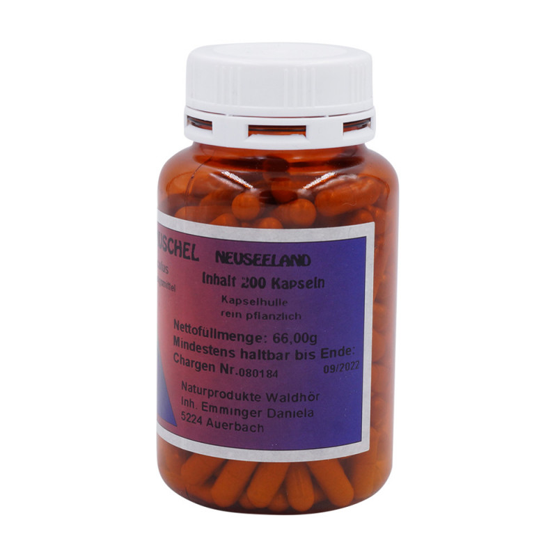 Waldhör Grünlippmuschel Extrakt Kapseln: Das Extrakt der Grünlippmuschel ist schon seit Jahrhunderten das Geheimrezept der Maoris gegen Gelenk- und Knochenbeschwerden. Erhältlich in den Varianten 70 Stück und 200 Stück.