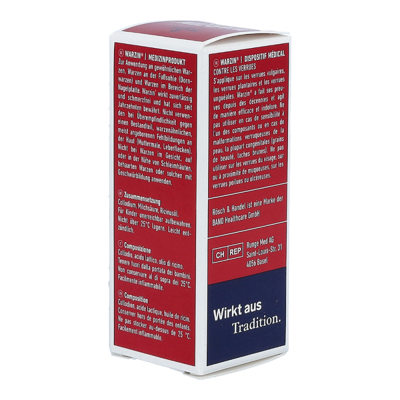 Warzin dient zur Behandlung von gewöhnlichen Warzen, Warzen and der Fußsohle auch sogenannte Dornwarzen und Warzen im Bereich der Nagelplatte.