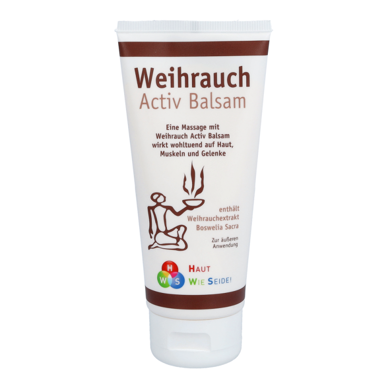 Eine Massage mit dem Weihrauch Activ Balsam wirkt wohltuend und entspannend auf Haut, Muskeln und Gelenke. Er enthält hochwertiges Jojobaöl sowie wertvolles Vitamin E und schützt und pflegt die Haut.
